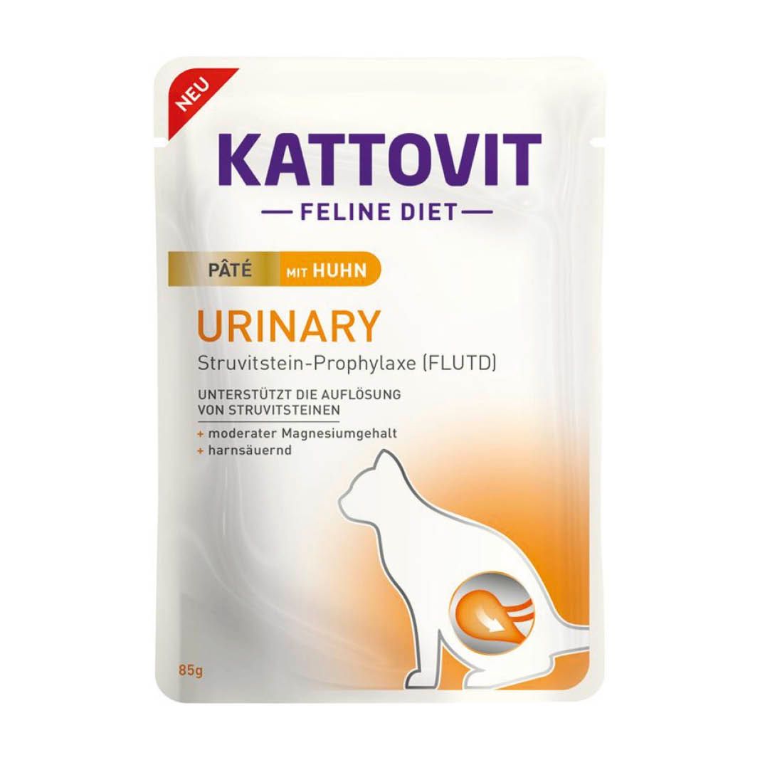 Kattovit Feline Diet - URINARY wurde nach neuesten wissenschaftlichen Erkenntnissen entwickelt. Zur Vorbeugung von Harnsteinen (Feline lower urinary tract disease - FLUTD) wurde die Zusammensetzung des Futters so entwickelt, dass der pH-Wert des Katzenurins mit 6,4 deutlich im niedrigen Bereich liegt. Kattovit URINARY enthält harnansäuernde Stoffe (DL-Methionin und Calciumsulfat) und hat einen niedrigen Magnesiumgehalt. Zur Vorbeugung sind eine hohe Verdaulichkeit und eine hohe Energiedichte wichtig.