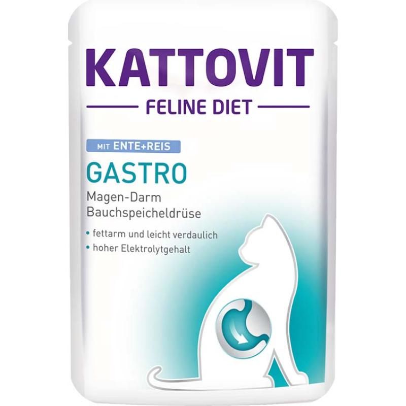 Kattovit Feline Diet - GASTRO wurde speziell für Katzen mit gastro-intestinalen Problemen (Magen-Darm, Bauchspeicheldrüse) entwickelt. Dieses Diätfuttermittel hat einen niedrigen Fettgehalt in einer besonders leicht verdaulichen Zusammensetzung sowie einen erhöhten Elektrolytgehalt.