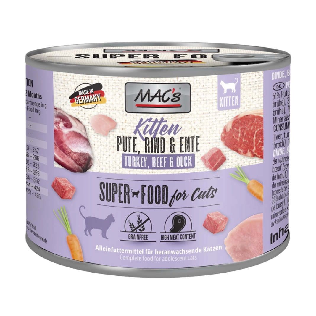 MAC’s Kitten ist eine besonders schmackhafte Komposition und wurde als ausgewogene, getreidefreie Vollnahrung für Kitten entwickelt. Durch das besondere Aminosäureprofil wird Ihr heranwachsender Liebling mit allem versorgt, was er für ein gesundes Wachstum benötigt. Durch schonende Zubereitung und die Zugabe von Vitaminen und Mineralstoffen wird eine naturnahe Ernährung Ihrer jungen Katze erreicht.