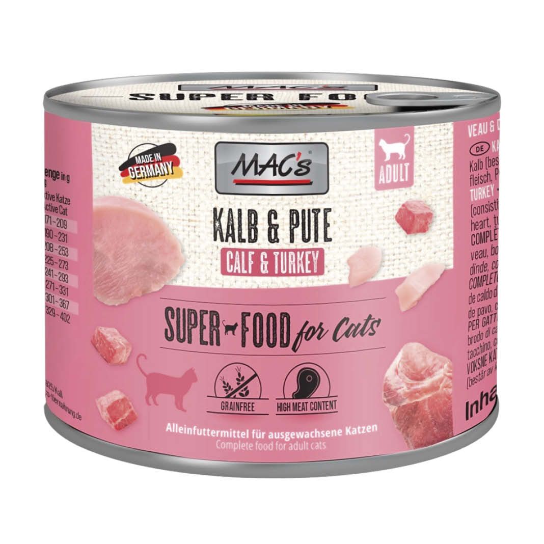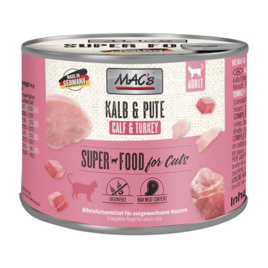 MAC’s Kalb & Pute bietet Ihrer Katze das, was sie am liebsten mag – Fleisch. Die getreidefreie Vollnahrung wurde konsequent ohne die Zugabe jeglicher Kohlenhydrate entwickelt. Die Kombination aus frischer Pute und frischem Kalb ist sehr schmackhaft. Durch schonende Zubereitung und die Zugabe von Vitaminen und Mineralstoffen wird eine naturnahe Ernährung Ihrer Katze erreicht.