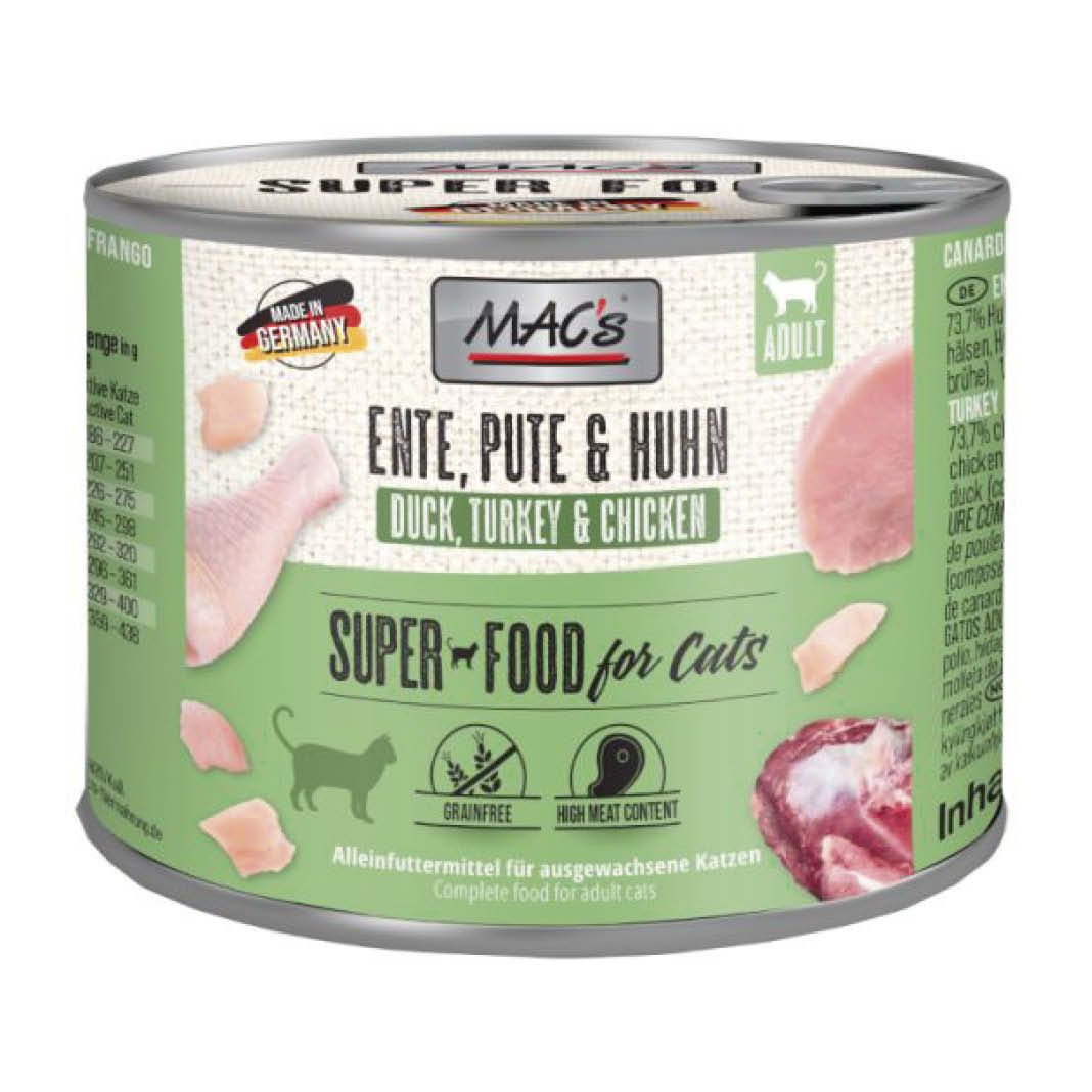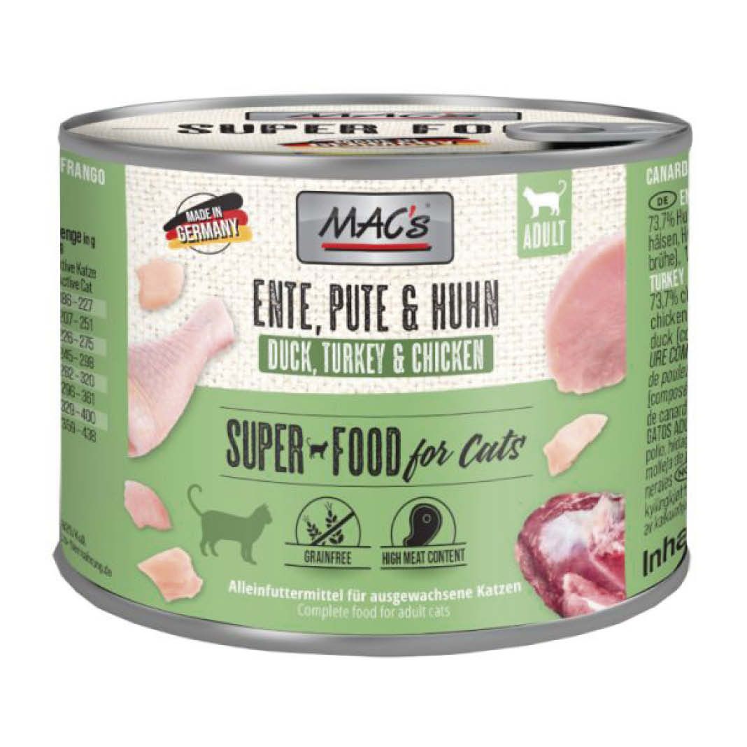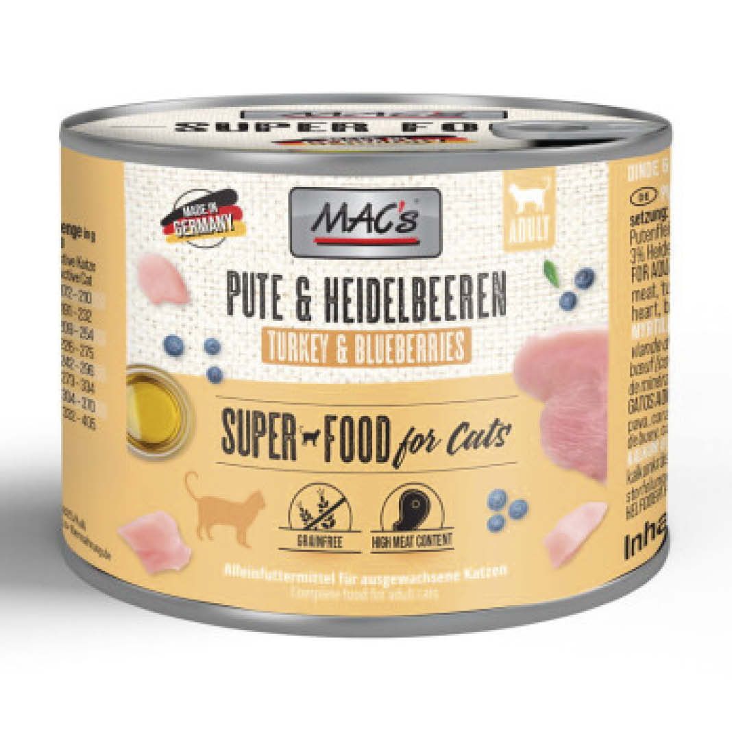 MAC’s Pute, Rind & Heidelbeeren besteht aus zarter Pute und wird besonders schmackhaft mit Rind verfeinert und fruchtig mit Heidelbeeren abgerundet. Die besondere Rezeptur ist getreidefrei und als ausgewogene Vollnahrung entwickelt. Durch schonende Zubereitung und die Zugabe von Vitaminen und Mineralstoffen wird eine naturnahe Ernährung ihrer Katze erreicht.