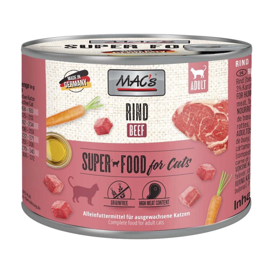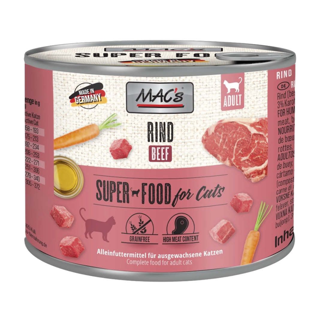 MAC’s Rind enthält neben zartem Rindfleisch auch kaltgepresstes Distelöl, welches viele wichtige Omega-Fettsäuren liefert. Abgerundet wird das besondere Geschmackserlebnis von Karotten, die wichtige Vitamine enthalten. Die besondere Rezeptur ist getreidefrei und wurde als ausgewogene Vollnahrung entwickelt. Durch schonende Zubereitung und die Zugabe von Vitaminen und Mineralstoffen wird eine naturnahe Ernährung Ihrer Katze erreicht.