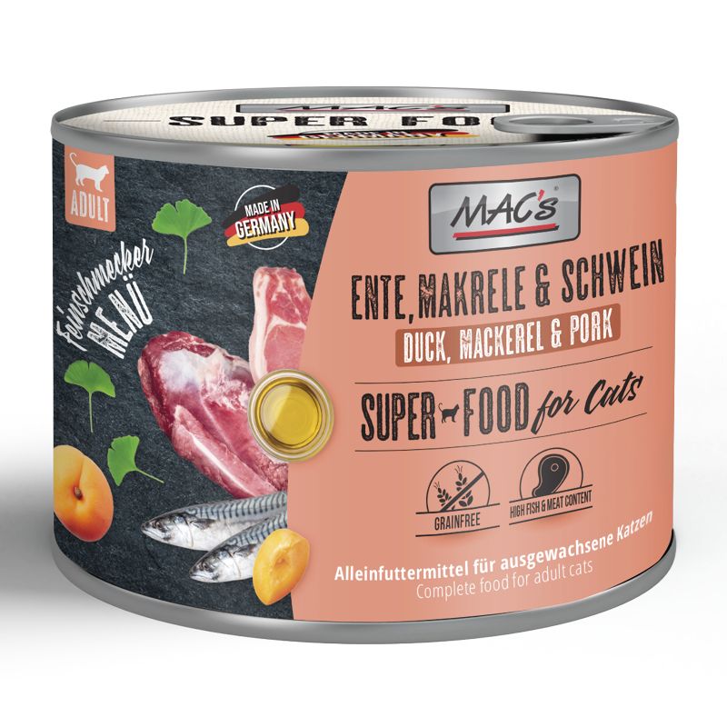 MAC´s Ente, Makrele & Schwein bietet Ihrem Vierbeiner ein tolles Geschmackserlebnis. Abgerundet wird die Sorte mit Aprikosen und Ginko.