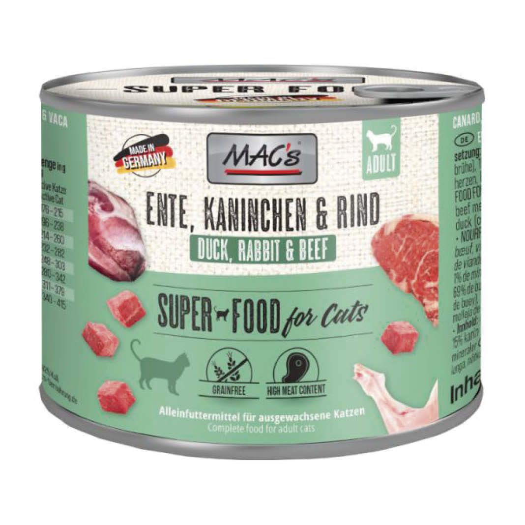 MAC’s Cat Ente, Kaninchen, Rind bietet Ihrer Katze das, was sie am liebsten mag – Fleisch. Die getreidefreie Vollnahrung wurde konsequent ohne die Zugabe jeglicher Kohlenhydrate entwickelt. Durch schonende Zubereitung und die Zugabe von Vitaminen und Mineralstoffen wird eine naturnahe Ernährung Ihrer Katze erreicht.