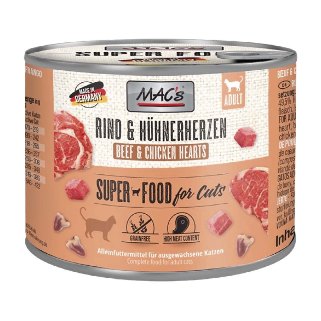 MAC’s Rind & Hühnerherzen vereint zartes dunkles und helles Fleisch zu einem Festmahl und bietet Ihrer Katze das, was sie am liebsten mag – Fleisch. Die getreidefreie Vollnahrung wurde konsequent ohne die Zugabe jeglicher Kohlenhydrate entwickelt. Durch schonende Zubereitung und die Zugabe von Vitaminen und Mineralstoffen wird eine naturnahe Ernährung Ihrer Katze erreicht.