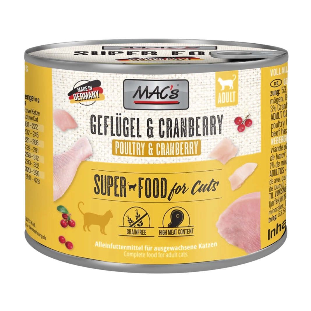 MAC’s Geflügel, Beef & Cranberry ist getreidefrei und die besondere Rezeptur wurde als ausgewogene Vollnahrung entwickelt. Cranberry hat einen positiven Effekt auf den Urintrakt Ihres Lieblings und kann helfen Krankheiten vorzubeugen. Durch schonende Zubereitung und die Zugabe von Vitaminen und Mineralstoffen wird eine naturnahe Ernährung Ihrer Katze erreicht.