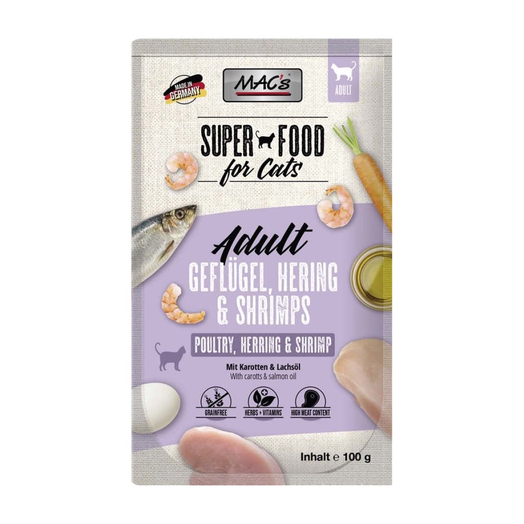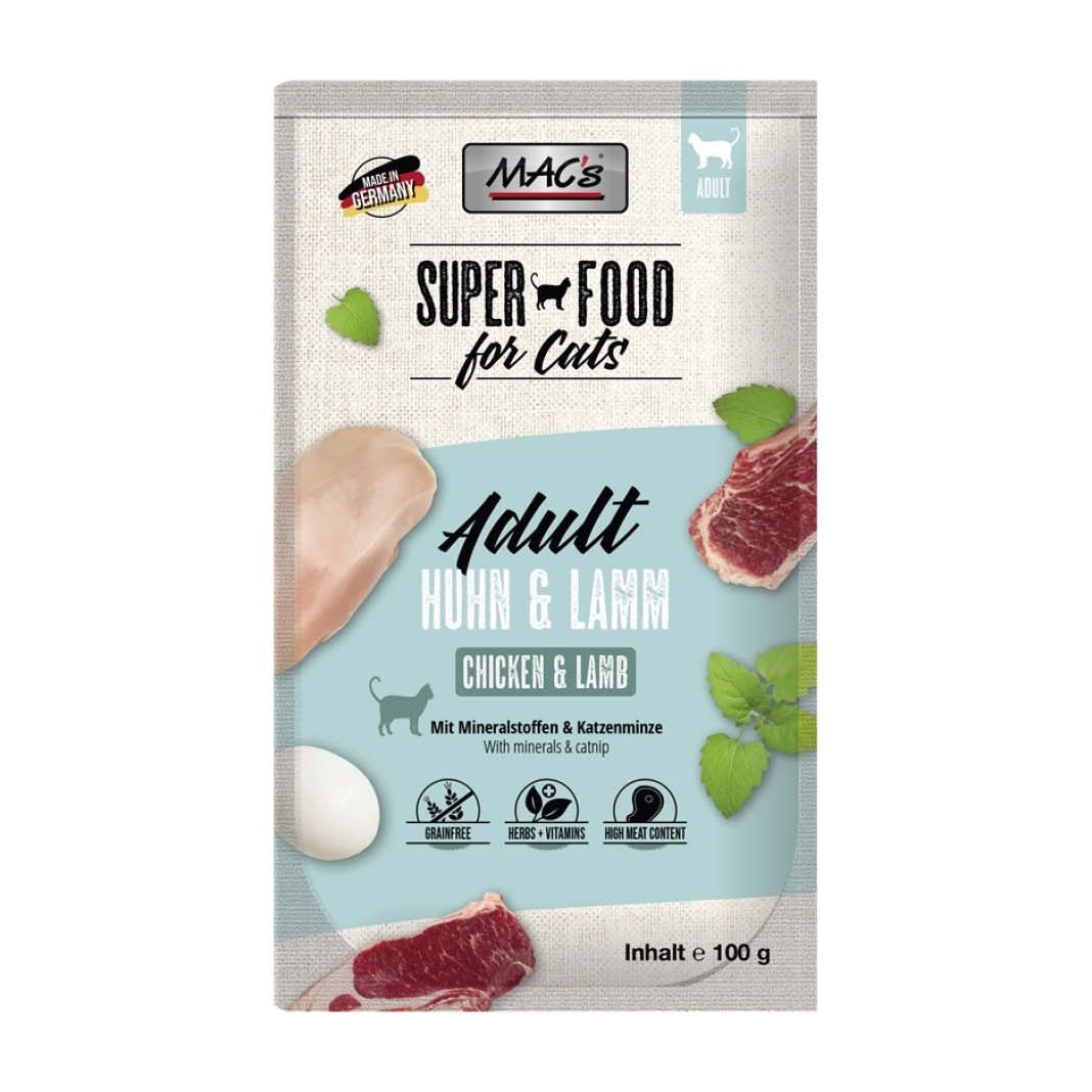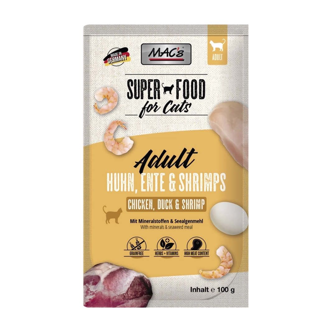 Im neuen Mac’s-Sortiment wurde besonderer Wert auf natürliche und gesunde Zutaten gelegt. Die Kombination mit verschiedenen Fleischsorten, einem Kräutermix sowie Apfel, Cranberry, Löwenzahn, Preiselbeeren oder Malz sorgen für einen besonderen Geschmack und garantieren die Gesundheit der Katze. Die dezenten Fleischstücke in Kombination mit dem Pâte/Gelee sorgen bei der Katze für ein besonderes Geschmackserlebnis. In allen Produkten wurde auf Konservierungsstoff sowie Akzeptanzverstärker wie Zucker, Salz sowie auf künstliche oder natürliche Farbstoffe verzichtet. Diese Vollnahrung besticht durch ihre Naturbelassenheit bei den verwöhnten Katzen. Der bequeme Pouchbeutel sorgt für eine saubere und optimale Futterzubereitung