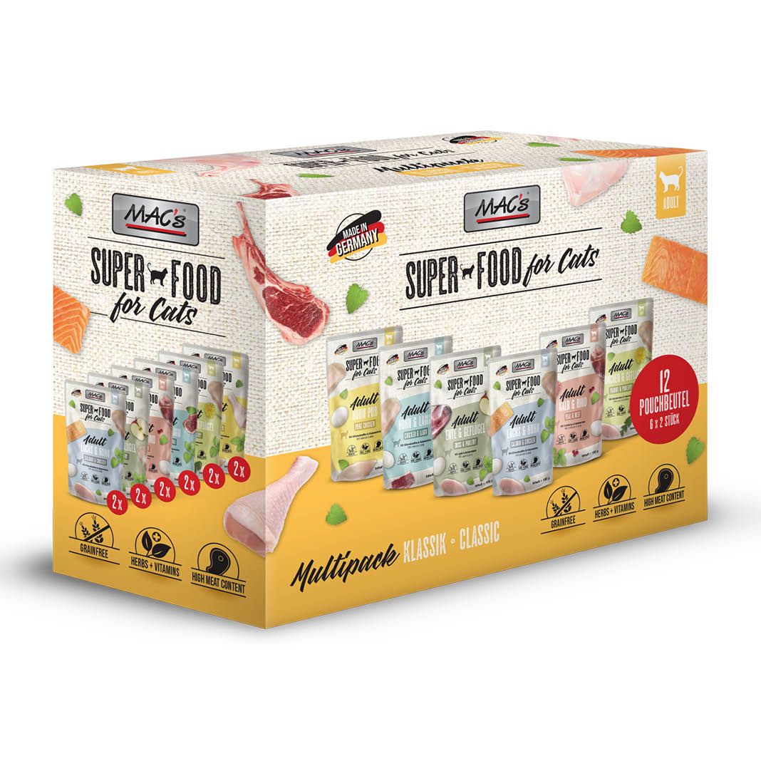 Im neuen Mac’s-Sortiment wurde besonderer Wert auf natürliche und gesunde Zutaten gelegt. Die Kombination mit verschiedenen Fleischsorten, einem Kräutermix sowie Apfel, Cranberry, Löwenzahn, Preiselbeeren oder Malz sorgen für einen besonderen Geschmack und garantieren die Gesundheit der Katze. Die dezenten Fleischstücke in Kombination mit dem Pâte/Gelee sorgen bei der Katze für ein besonderes Geschmackserlebnis. In allen Produkten wurde auf Konservierungsstoff sowie Akzeptanzverstärker wie Zucker, Salz sowie auf künstliche oder natürliche Farbstoffe verzichtet. Diese Vollnahrung besticht durch ihre Naturbelassenheit bei den verwöhnten Katzen. Der bequeme Pouchbeutel sorgt für eine saubere und optimale Futterzubereitung