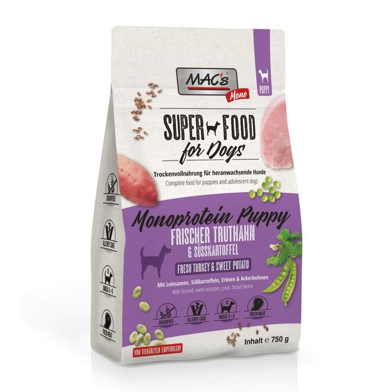 MAC's MONO PUPPY wurde speziell für Welpen und heranwachsende Hunde entwickelt. Es wurde auf die Bedürfnisse von Welpen und Junghunden abgestimmt. Die Kombination aus hohem Fleischanteil, Obst und Gemüse sorgt für einen guten Stoffwechsel. Besonders Glucosamin und Chondroitin unterstützen die gesunde Entwicklung von Gelenken und Knochen. MAC's MONO PUPPY ist ein Super Premium Produkt, das sich die Natur als Vorbild genommen hat.