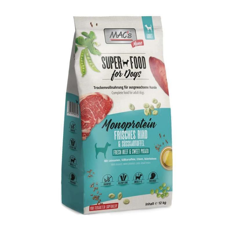 MAC's MONO wurde speziell für allergieanfällige Hunde entwickelt. Die Grundlage ist eine Fleischsorte als Proteinlieferant und Süßkartoffel und Erbsen als Kohlenhydratlieferant. Die Kombination mit Erbsen, Rapsöl, entzuckerten Rübenschnitzeln, Leinsamen, Apfel und Yucca schidigera sorgt für eine ausgewogene Ernährung und gleichzeitig ein besonderes Geschmackserlebnis für Ihren Hund.