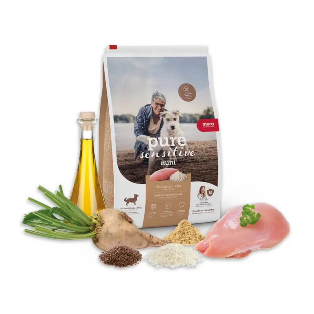 Das Trockenfutter pure sensitive Mini Truthahn & Reis ist besonders für sensible Hunde geeignet. Mit bekömmlichen Truthahn als einzige tierische Proteinquelle und leicht verdaulichem Reis verzichtet die Rezeptur auf glutenhaltige Zutaten. Die hoch verdauliche Rezeptur ist nach dem Limited Ingredient Diet (L.I.D.) Prinzip konzipiert und in seiner Zusammensetzung auf die wesentlichen Zutaten für sensible Hunde konzentriert. Das Risiko von Nahrungsunverträglichkeiten und Allergien kann so minimiert werden.