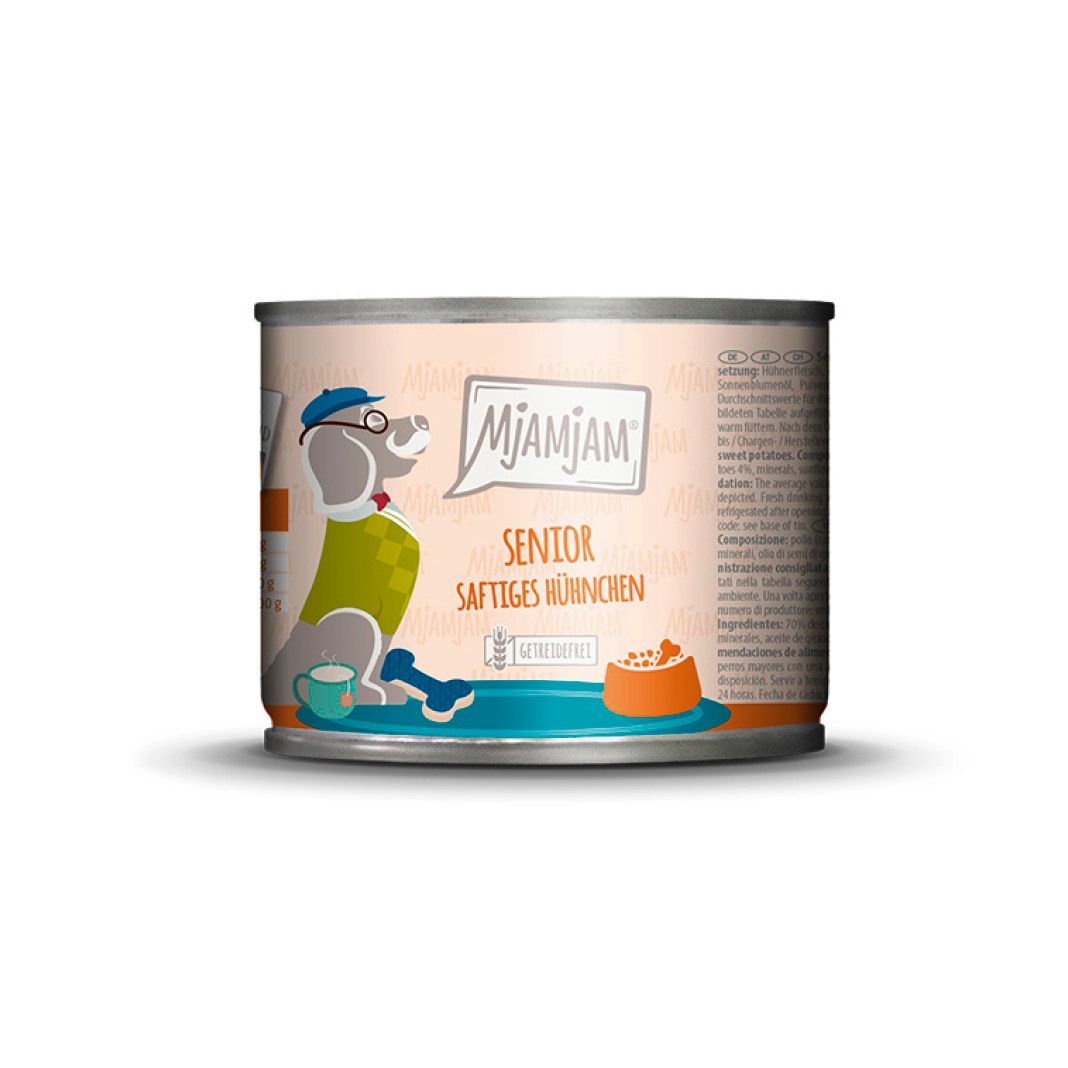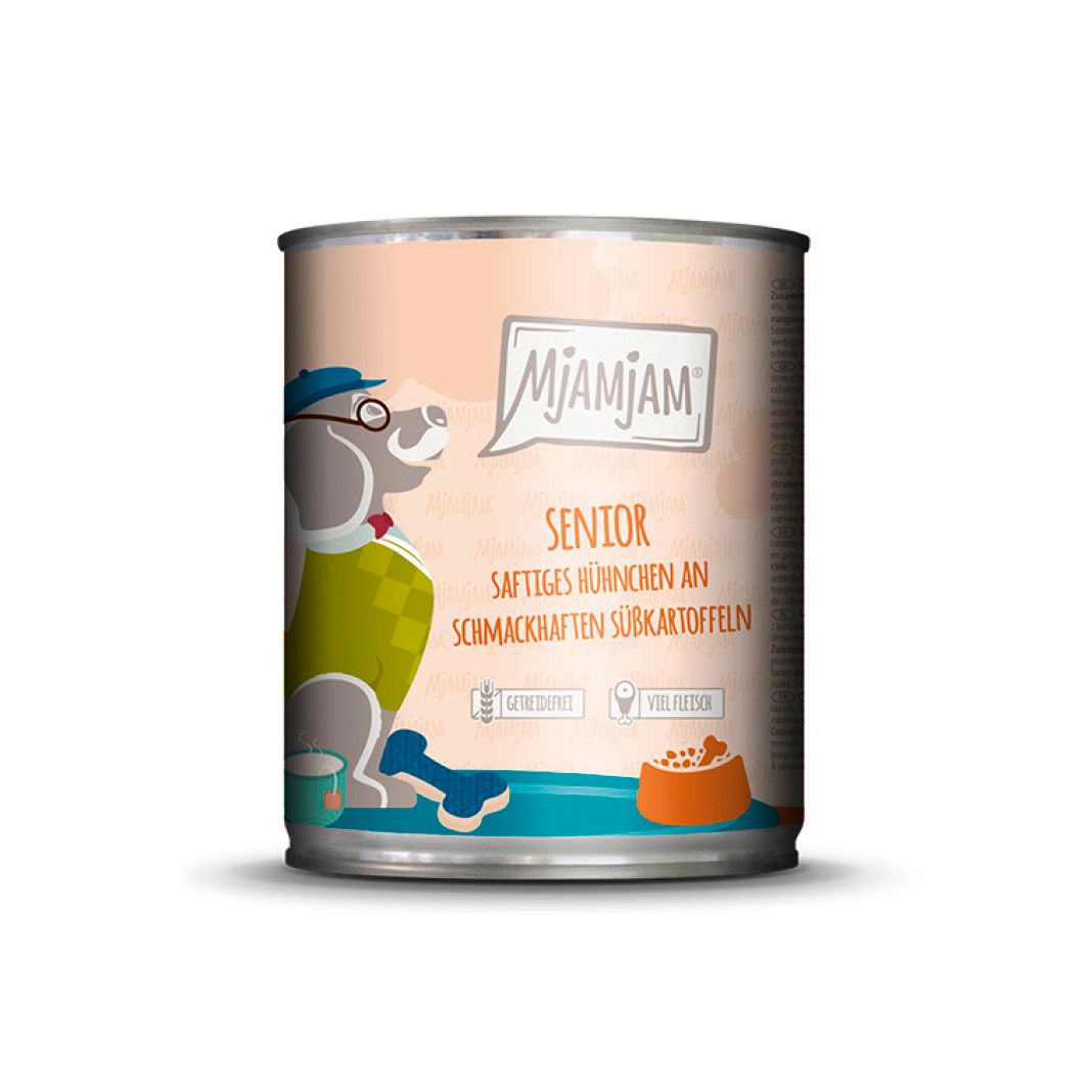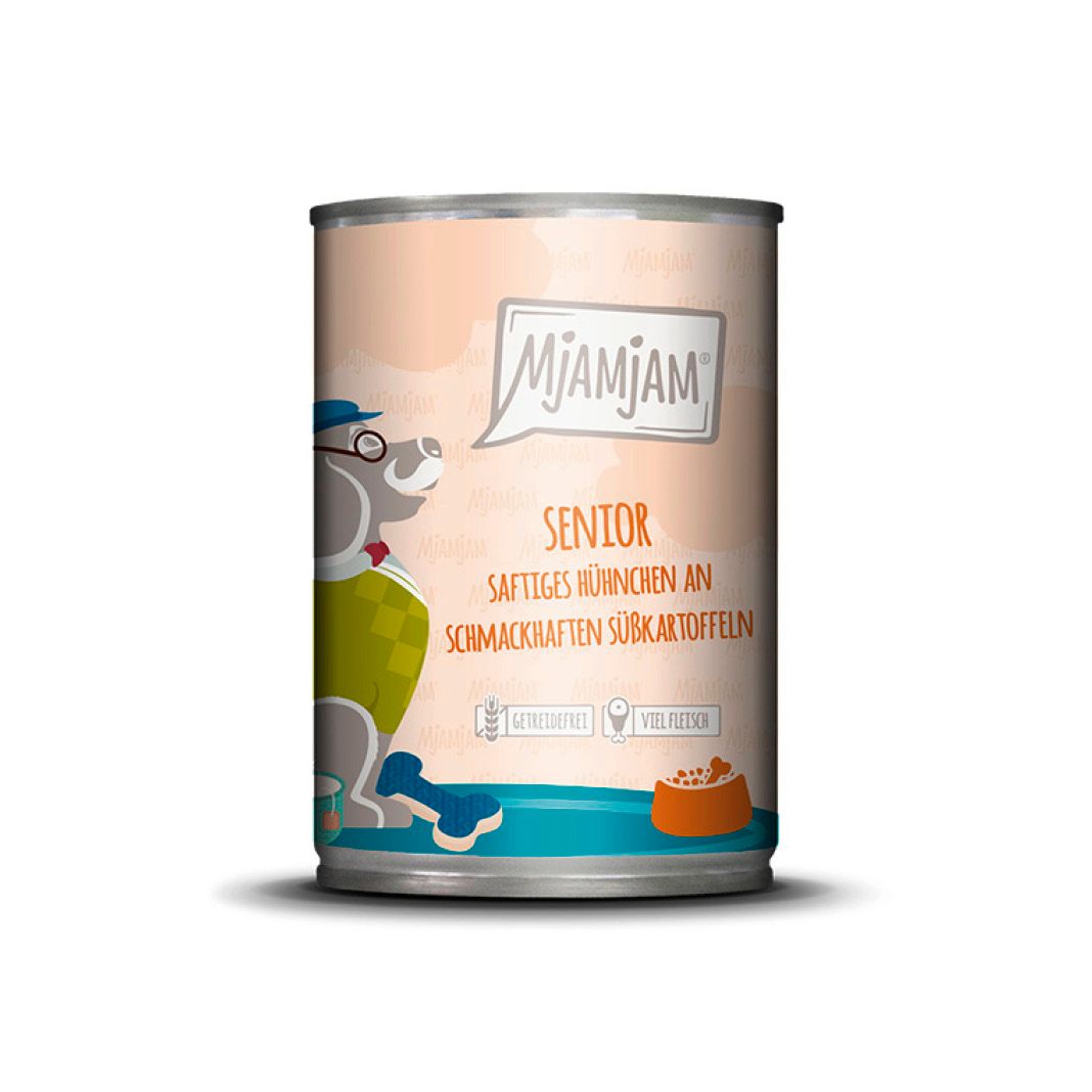 In der Ruhe liegt die Kraft - und in der richtigen Mahlzeit für deinen Liebling! Mit saftigem Hühnchen und schmackhaften Süßkartoffeln sorgen wir von MjAMjAM für den perfekten Leckerbissen. Klingt „dufte“? Finden wir auch! Deshalb sparen wir uns auch hier unnötige Zusätze und servieren deinem Liebling getreidefrei genau das, was er braucht. Der Lebensabend deines „Oldies“ kann so köstlich sein!