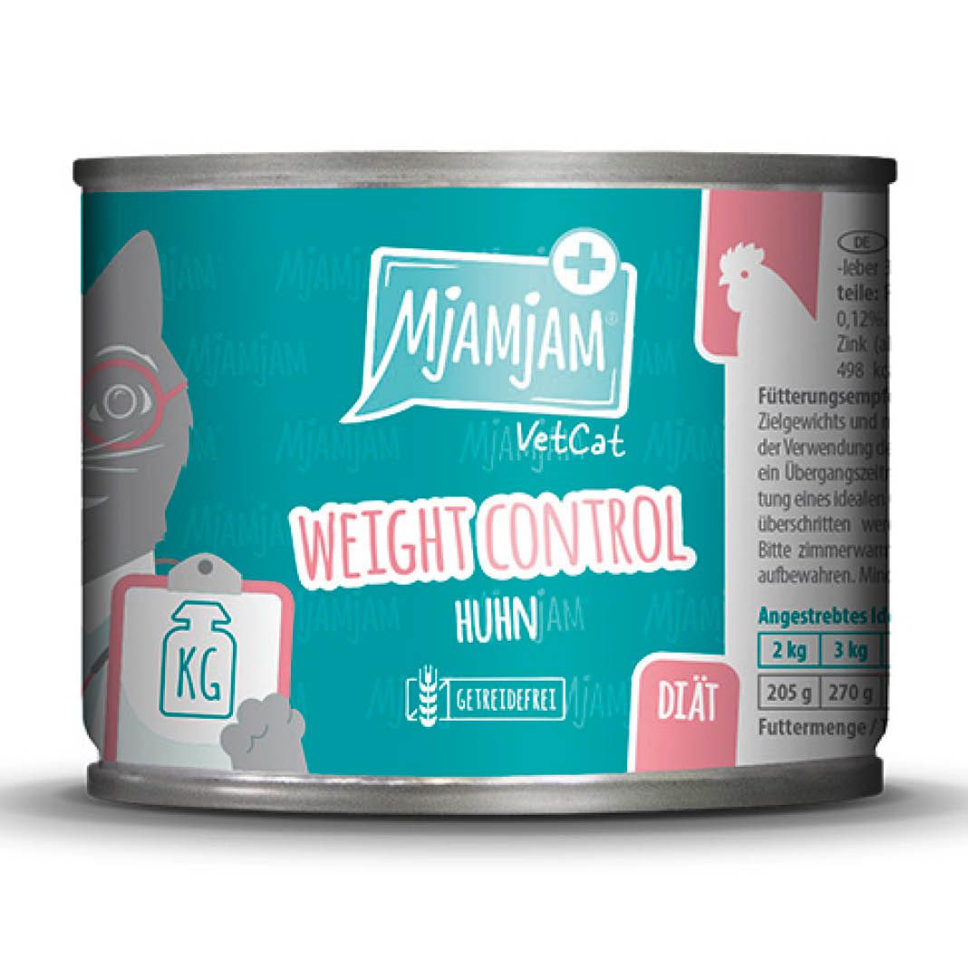 Hier ein Pölsterchen, da ein Röllchen! Einer Katze steht jedes Gramm wie angegossen. Wenn allerdings das Gewicht weiter zunimmt und der Gesundheitszustand der Samtpfote in Mitleidenschaft gezogen wird, sollte umgehend reagiert werden. Dr. VetCat empfiehlt: MjAMjAM VetCat Weight Control! Diese Mahlzeit kann nicht nur die Gewichtsabnahme deines Lieblings unterstützen, sondern bietet deiner Katze gleichzeitig das gewohnte Geschmackserlebnis von MjAMjAM.