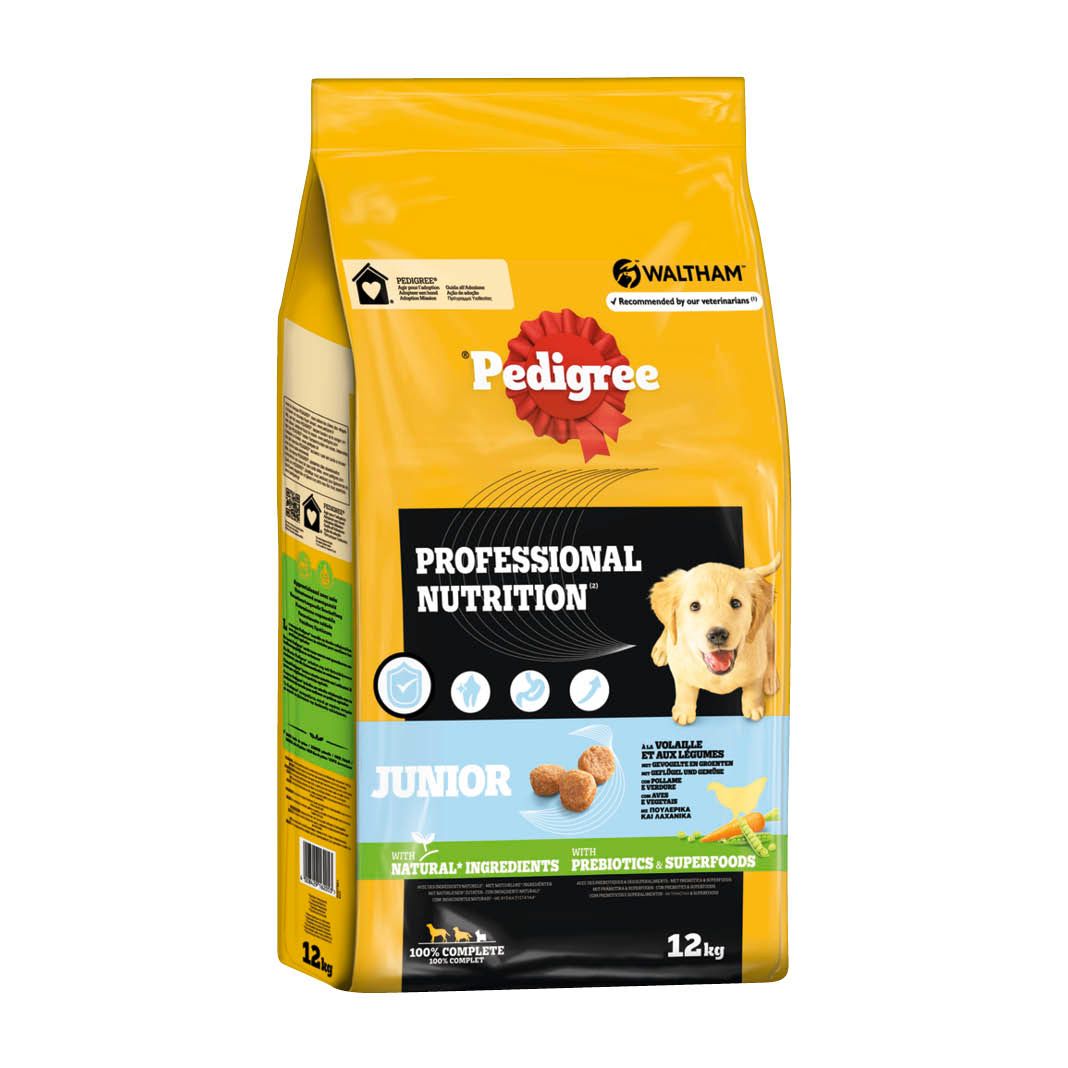 Alleinfuttermittel für Welpen - Tiernahrung. PEDIGREE® Junior Trockenfutter für Welpen mittlerer und großer Rassen mit Geflügel und Gemüse 12 kg wird mit natürlichen Zutaten, Präbiotika und Superfoods hergestellt und liefert alle wichtigen Mineralstoffe und Vitamine für eine gesunde Entwicklung. Ohne Zusatz von künstlichen Farb- und Aromastoffen. Mit allen wichtigen Mineralstoffen und Vitaminen für eine gesunde Entwicklung. Pflege von Zähnen und Zahnfleisch: Welpen verdienen es gesunde Zähne zu haben. Unser Produkt enthält die richtige Menge an Kalzium, um die Entwicklung gesunder Zähne zu unterstützen. Die Brockengröße ist speziell an die Kiefer von Welpen angepasst. Gesunde Verdauung: Jeder Welpe verdient es eine gute Verdauung zu haben. Unser Produkt enthält Ballaststoffe, Präbiotika und hochverdauliches Geflügel, damit es von ihrem sich entwickelnden Verdauungssystem leicht aufgenommen werden kann. Unterstützung der natürlichen Abwehrkräfte: Unsere Rezepte enthalten Vitamin E, das bekanntermaßen die natürlichen Abwehrkräfte unterstützen kann, sodass dein Hund auch weiterhin die große weite Welt erkunden kann. Wachstum & Schutz: Mit allen wichtigen Mineralstoffen und Vitaminen für eine gesunde Entwicklung.