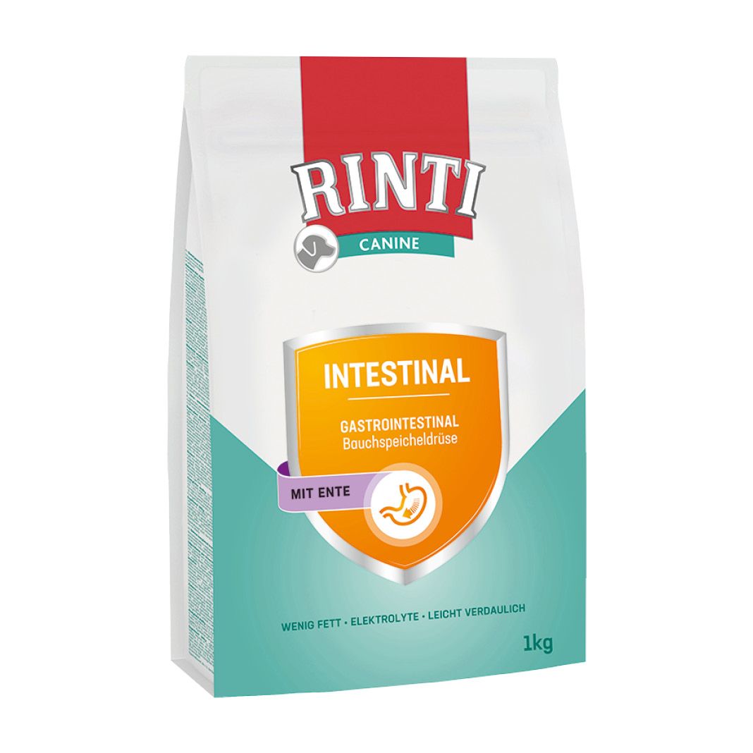 Rinti Canine - INTESTINAL wurde für Hunde mit gastrointestinalen Problemen (Magen-Darm/ Bauchspeicheldrüse) entwickelt. Dieses Diätfuttermittel hat einen niedrigen Fettgehalt in einer besonders leicht verdaulichen Komposition sowie einen erhöhten Elektrolytgehalt.