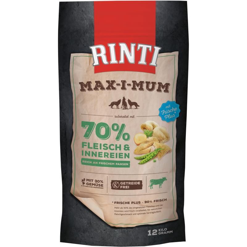 Rinti Max-i-Mum wird mit 65% frischem Fleisch und frischen Innereien zubereitet. Dies entspricht über 90% der eingesetzten Fleischmaterialien. Dadurch wird der natürliche Fleischgeschmack gefördert und die Nahrungsverwertung unterstützt. Mit einem erhöhten Fettgehalt ist ein ausgewogenes Protein-/Fett-Verhältnis für eine schonende Verdauung gewährleistet.