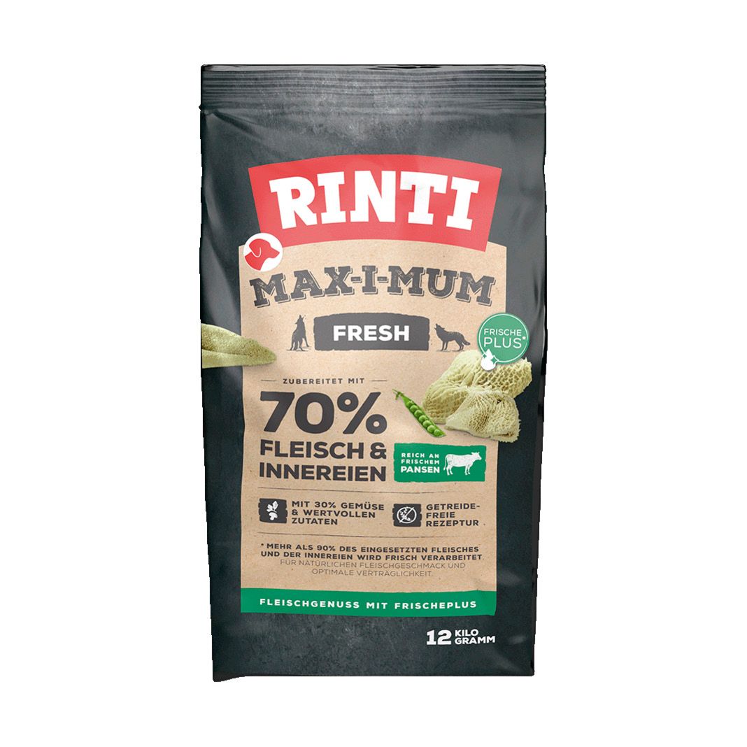 Trockenfutter wird häufig mit Getreide hergestellt. Der Hund ist von Natur aus ein Fleischfresser. Deshalb verwendet Rinti Max-i-Mum hohe Frischfleischgehalte, die in einem aufwendigen Produktionsprozess verarbeitet werden.