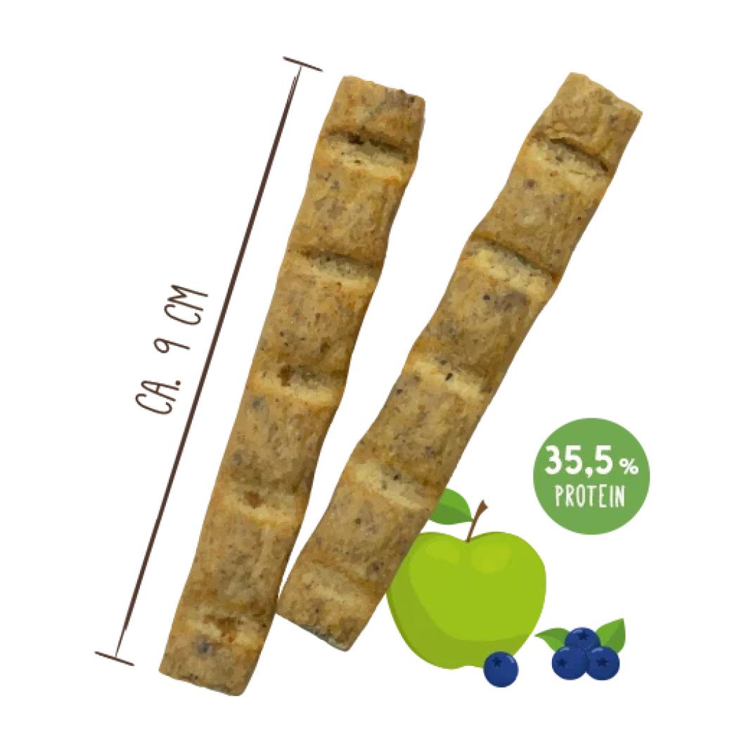 Lieber fruchtig oder doch besser fleischig? Sammy's köstliche und proteinreiche Fitness-Schnitte vereint frisches Hühnchen mit einem saftigen Mix aus knackigen Äpfeln und fruchtigen Blaubeeren. Der köstliche Single Animal Protein-Riegel liefert wertvolle Energie für einen langen, aufregenden Tag in der Natur.