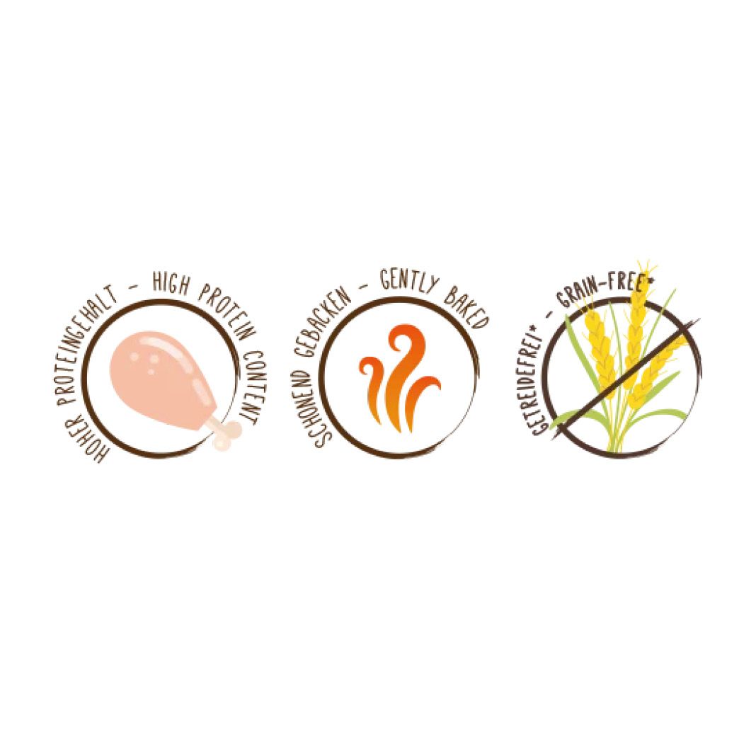 - Selbst bei größter Sorgfalt in der Herstellung und Verpackung unserer Produkte können Spuren anderer tierischer Proteinquellen oder (glutenhaltigem) Getreide nicht ausgeschlossen werden.