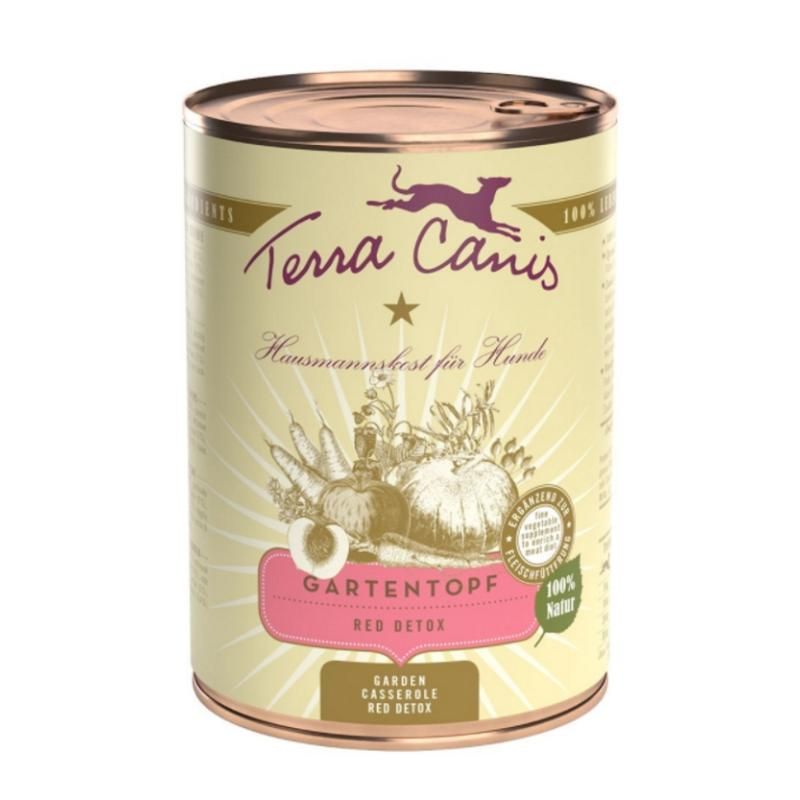 Mit 80 % Gemüse und 20 % Obstanteil ist der Terra Canis-Gartentopf die perfekte Ergänzung für die Ernährung Ihres Hundes mit rohem oder gegartem Fleisch sowie mit reinen Fleischdosen.