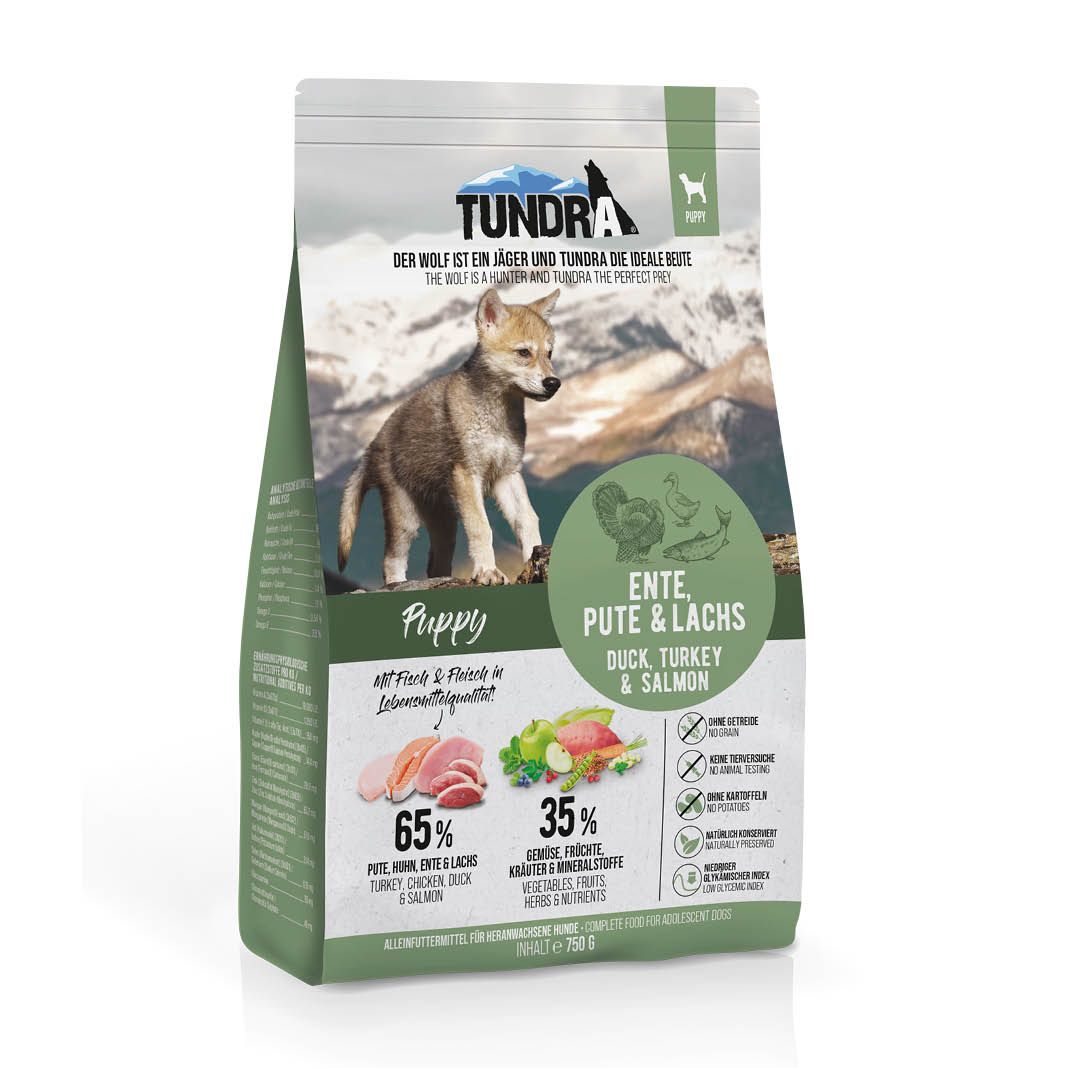 Nachdem wir uns intensiv mit der ursprünglichen Ernährung des Urvaters unserer Haushunde, dem Wolf, beschäftigt haben, wurde uns klar, dass wir gravierende Verbesserungen bei den Inhaltsstoffen benötigen. Unser Haushund gehört wie der Wolf zur Ordnung der Karnivoren, die sich hauptsächlich von Fleisch ernähren und unter anderem beim Verzehren Ihrer Beutetiere Obst, Gemüse, Kräuter und Kohlehydrate in Form des Mageninhalts aufnehmen. Unser Haushund ist mit dem Verdauungstrakt eines Wolfes ausgestattet und erwartet eine angemessene Ernährung. Unsere Tundra-Produktlinie ist ernährungsphysiologisch ausgewogen und getreidefrei hergestellt. Nur die besten Inhaltsstoffe, sehr viel frisches Fleisch und Fisch in Lebensmittelqualität, sowie Obst und Gemüse werden durch unser schonendes Herstellungsverfahren zu einer artgerechten Ernährung. Diese Kombination ist genau das, was unsere Lieblinge heute brauchen.