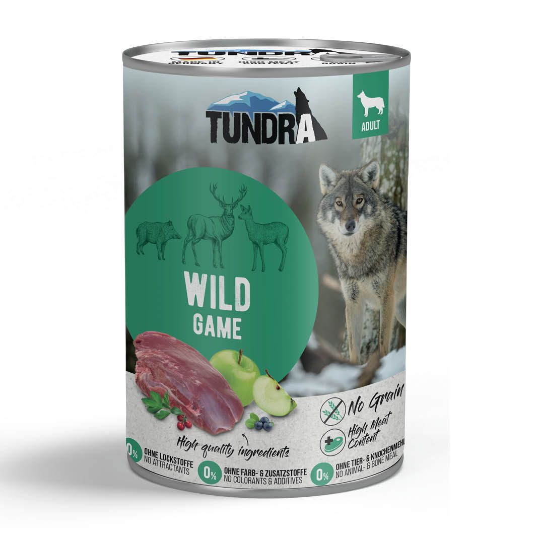 70,2% Wild (bestehend aus Hirsch- und Rehfleisch, Wildschweinfleisch, Wildfleischbrühe), 5% Süßkartoffeln, 5% Kürbis, 5% Karotte, 5% Erbse, 4% Äpfel, 2% Blaubeeren, 2% Cranberries, 1% Mineralstoffe, 0,1% Petersilie