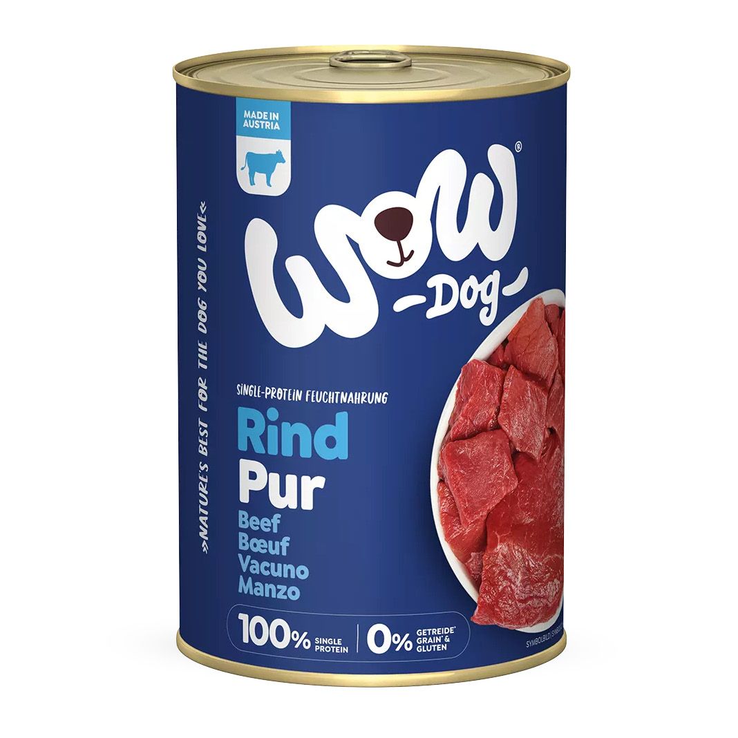 WOW Pur ist ein Single-Protein-Alleinfuttermenü mit einem hohen Fleischanteil von 71%, sowie viel frischem Obst & Gemüse. Für ausgewachsene Hunde aller Rassen geeignet.
