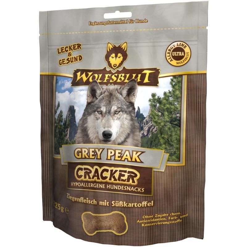 GREY PEAK CRACKER sind komplett getreidefreie Hundekekse mit einem hohen Fleischanteil. Sie bauen auf der Wolfsblut-Futtersorte GREY PEAK auf und enthalten kein Zucker, keine Farb-, Duft-, Füll-, Lock- oder Konservierungsstoffe und auch keine chemischen Antioxidantien.