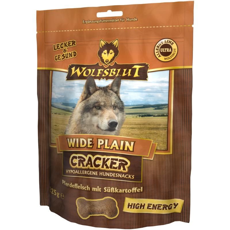 WIDE PLAIN CRACKER - High Energy sind komplett getreidefreie Hundekekse mit einem hohen Energieeffekt. Sie bauen auf der Wolfsblut-Futtersorte WIDE PLAIN - High Energy auf und enthalten kein Zucker, keine Farb-, Duft-, Füll-, Lock- oder Konservierungsstoffe und auch keine chemischen Antioxidantien.