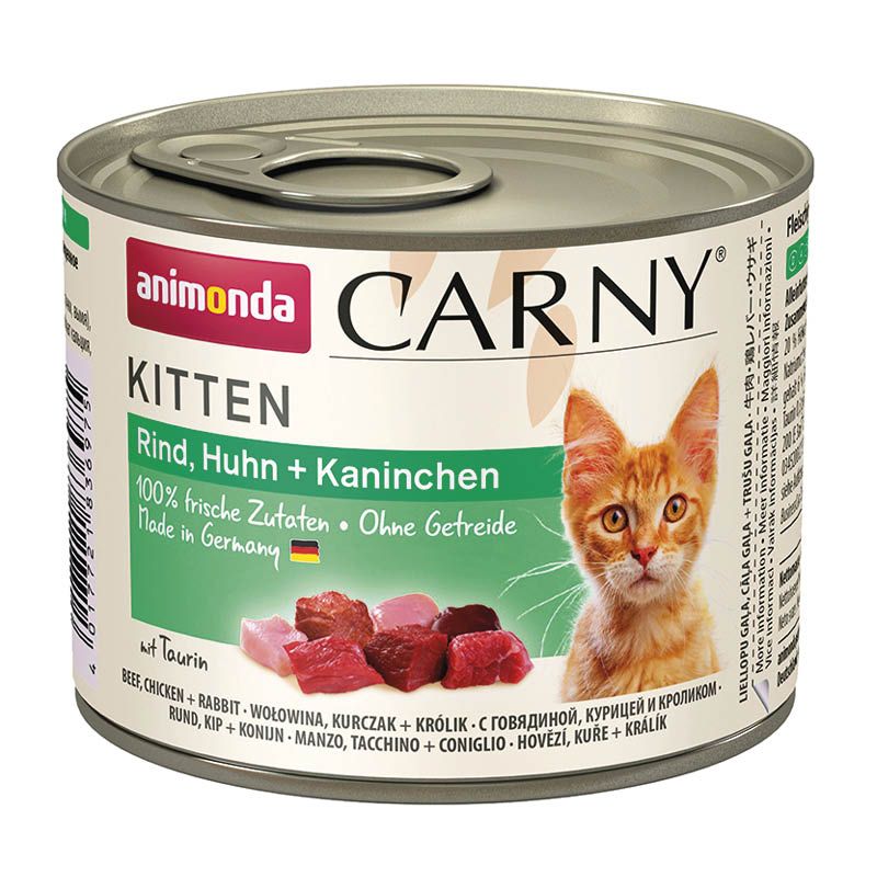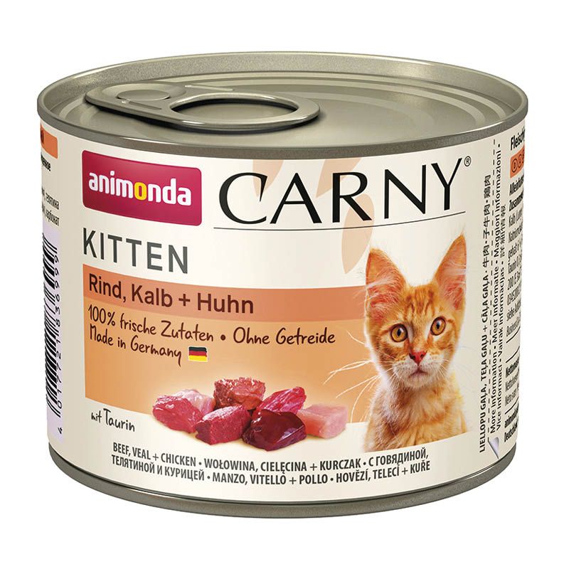 Carny® Kitten – aus frischen fleischlichen Rohstoffen – steht für ausgewogene, leckere, gesunde Ernährung auf höchstem Niveau für wachsende Katzen im ersten Lebensjahr. Katzenkinder entwickeln sehr früh ihre ersten geschmacklichen Vorlieben. Carny Kitten mit den leckeren, kätzchengerechten, kleinen fleischigen Stückchen ist speziell abgestimmt auf die Nährstoffansprüche wachsender Katzen.