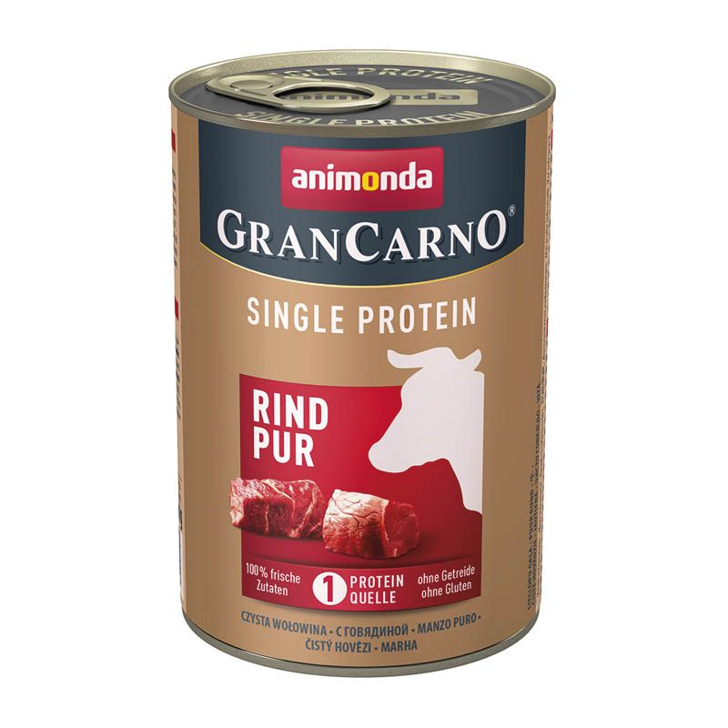 GranCarno® Single Protein steht für ausgewogene, leckere, gesunde Ernährung – mit nur einer tierischen Proteinquelle – für ausgewachsene Hunde von 1 - 6 Jahren. Die besonders selektierten, frischen fleischlichen Rohstoffe garantieren den unvergleichlichen Geschmack, den Hunde so sehr schätzen. GranCarno Single Protein wird ohne Getreide, Soja, Zucker, Geschmacksverstärker, künstliche Farb- und Konservierungsstoffe in Deutschland hergestellt. Es versorgt den ausgewachsenen Hund mit allen lebenswichtigen Nährstoffen.