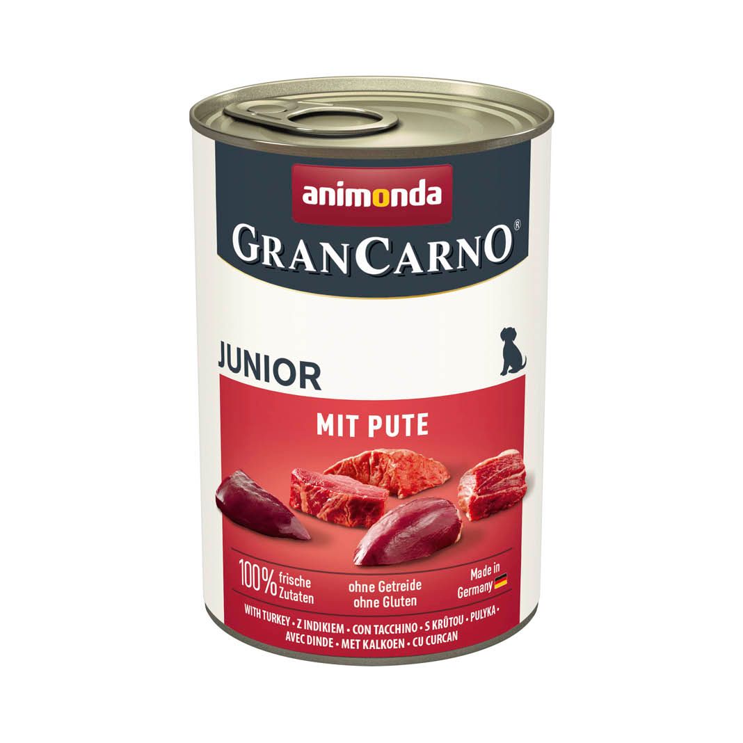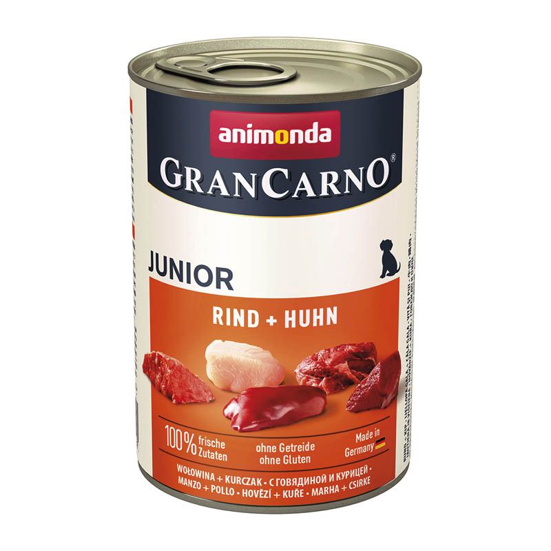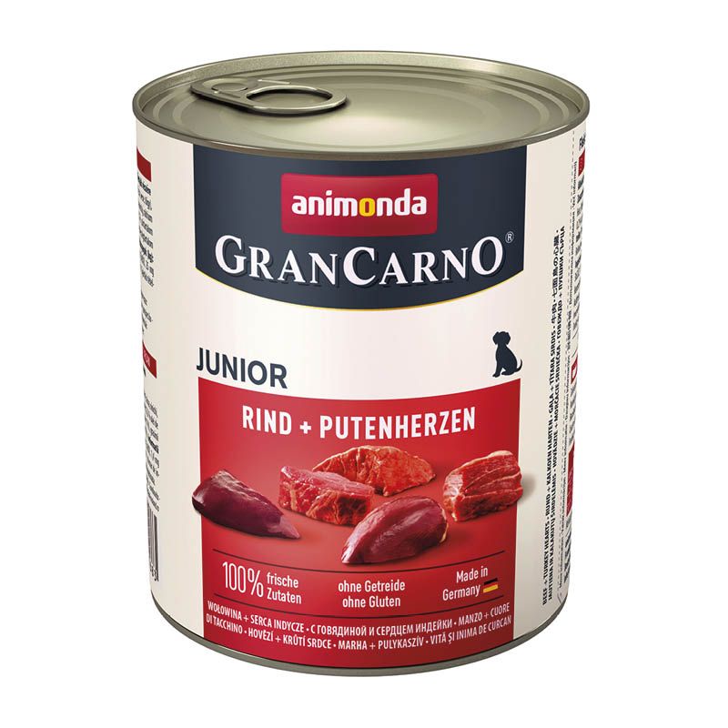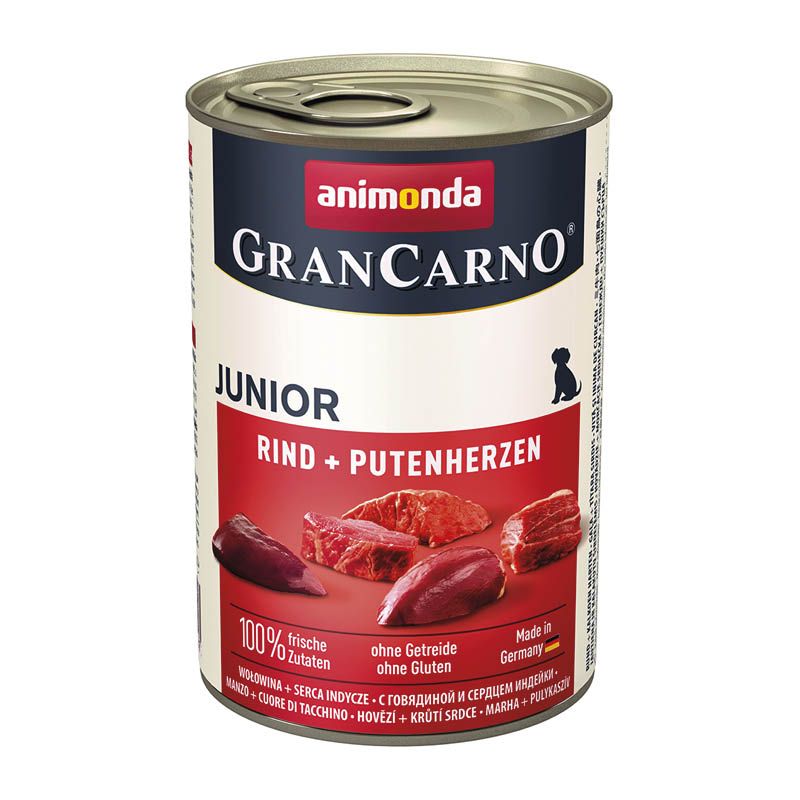 GranCarno® Junior steht für ausgewogene, leckere gesunde Ernährung auf höchstem Niveau für wachsende Hunde im ersten Lebensjahr. Die ausgewählten, frischen fleischlichen Rohstoffe garantieren den unvergleichlichen Geschmack, den Hunde so sehr schätzen. GranCarno Junior - mit den welpengerechten, kleinen fleischigen Stücken ist speziell abgestimmt auf die Nährstoffansprüche wachsender, junger Hunde.