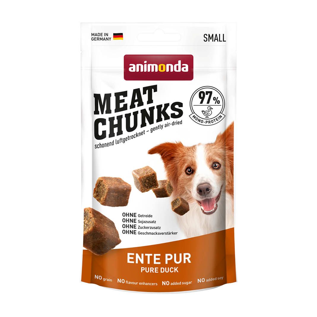 Ergänzungsfuttermittel für ausgewachsene Hunde. Die animonda® Meat Chunks sind für ausgewachsene Hunde unwiderstehtlich lecker. Diese fleischigen Hundesnacks enthalten nur eine tierische Proteinquelle und kein Getreide. Schonend luftgetrocknet und mit einem Fleischanteil von 98 % wird der Hundesnack ohne Zusatz von Zucker und Soja hergestellt. So können auch ernährungssensible Hunde mit diesem Snack verwöhnt werden. Für einen animonda Meat Chunk würden Hunde alles tun. Fast alles. Hergestellt in Deutschland.