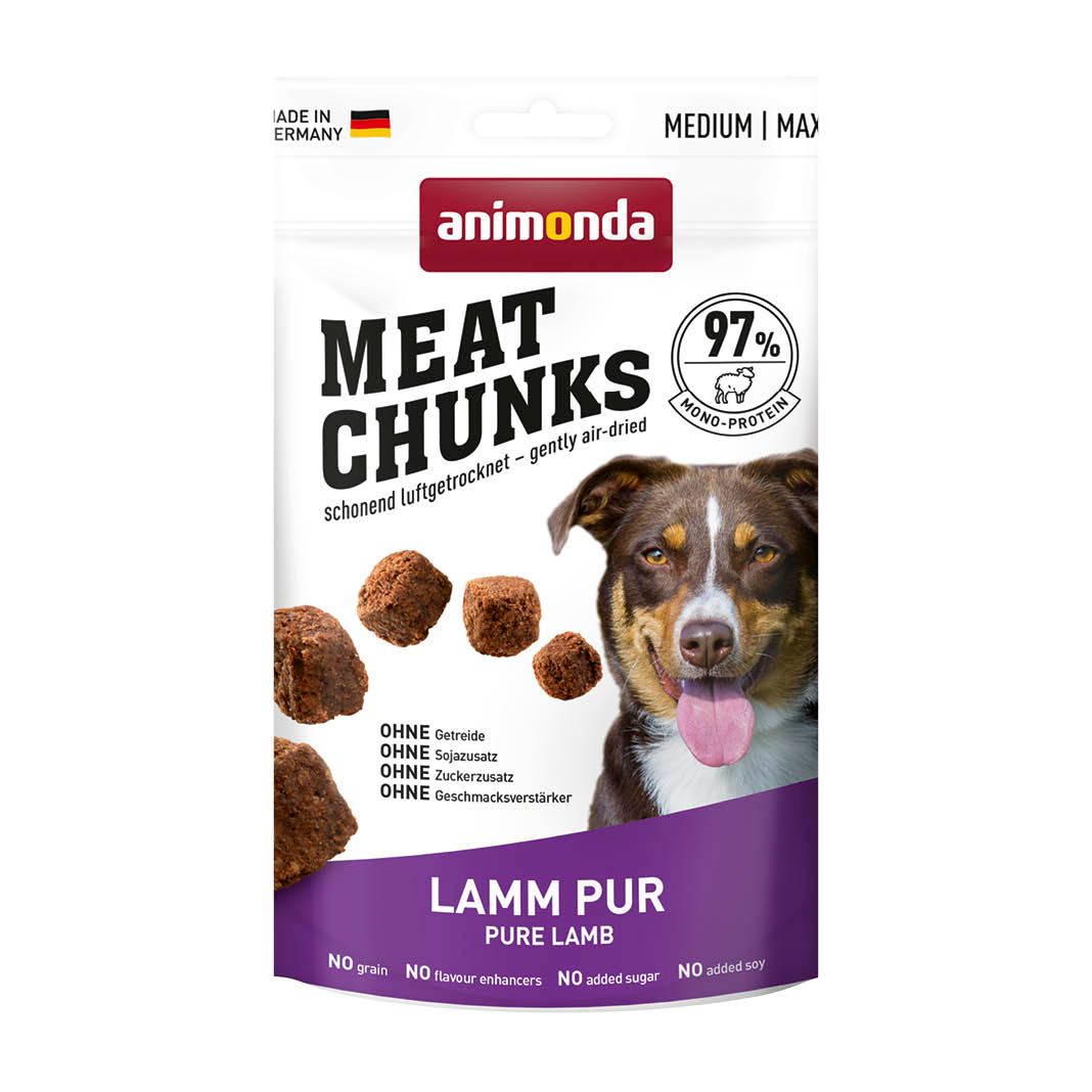 Ergänzungsfuttermittel für ausgewachsene Hunde. Die animonda® Meat Chunks sind für ausgewachsene Hunde unwiderstehtlich lecker. Diese fleischigen Hundesnacks enthalten nur eine tierische Proteinquelle und kein Getreide. Schonend luftgetrocknet und mit einem Fleischanteil von 98 % wird der Hundesnack ohne Zusatz von Zucker und Soja hergestellt. So können auch ernährungssensible Hunde mit diesem Snack verwöhnt werden. Für einen animonda Meat Chunk würden Hunde alles tun. Fast alles. Hergestellt in Deutschland.