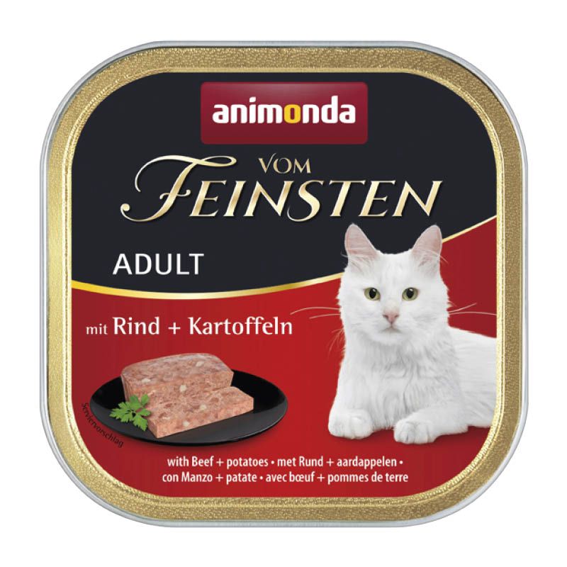 Vom Feinsten Adult steht für ausgewogene, leckere gesunde Ernährung auf höchstem Niveau für ausgewachsene Katzen von 1 - 6 Jahren. Die besondere Auswahl und Qualität der fleischlichen Zutaten garantieren einen einzigartigen Genuss. Die fein-stückigen Pasteten versorgen die ausgewachsene Katze mit allen lebenswichtigen Nährstoffen.