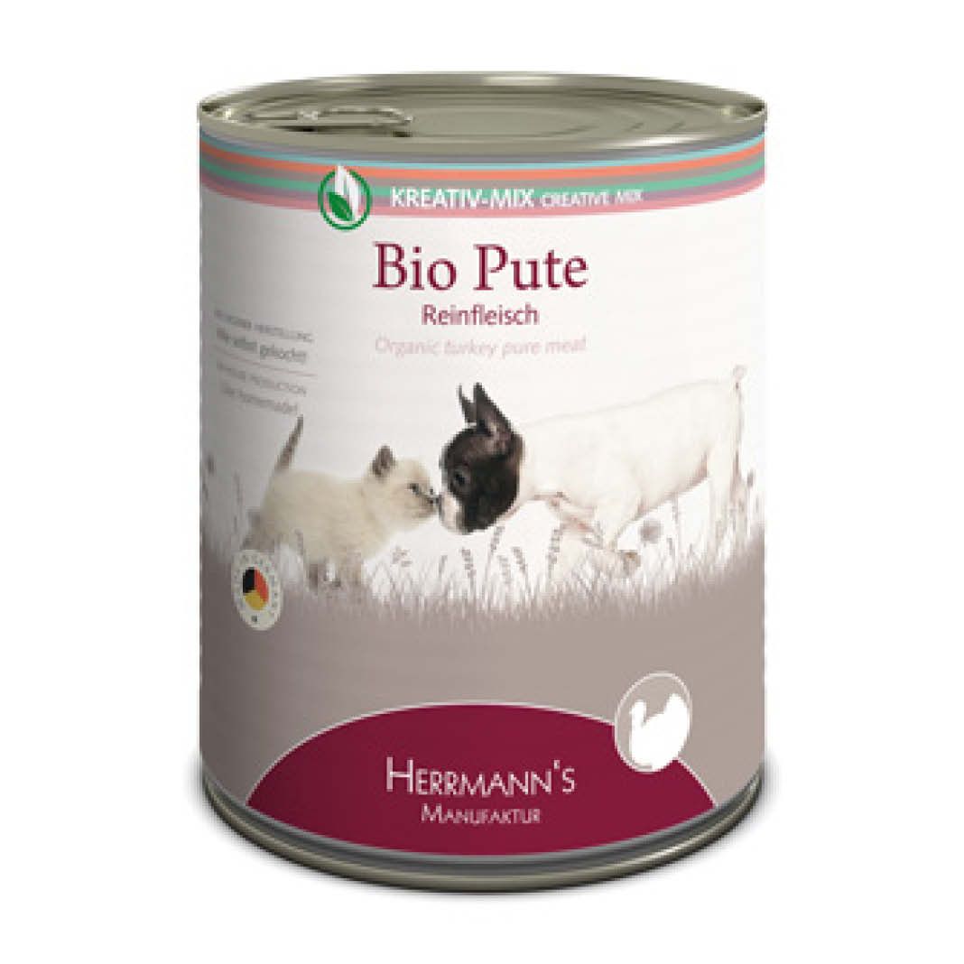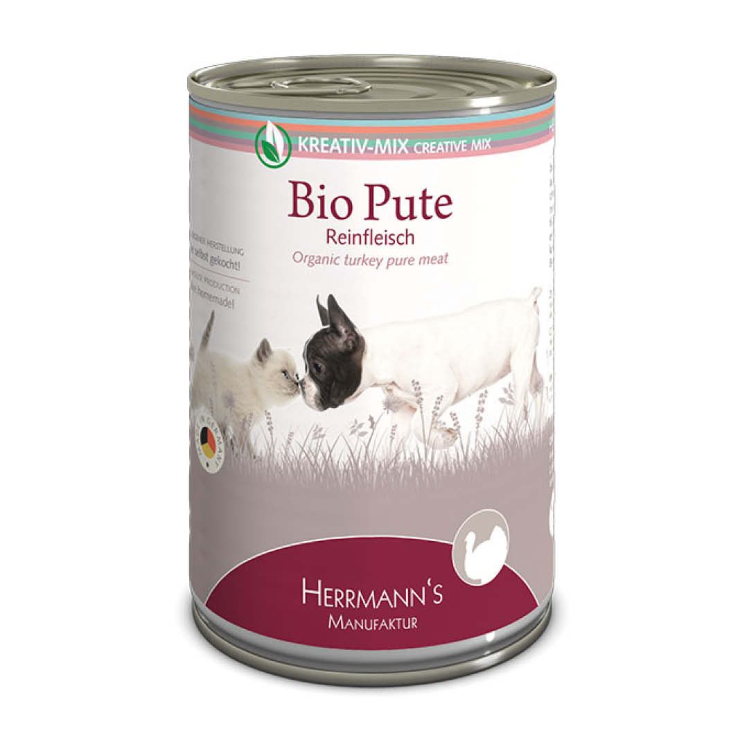 100 % Bio-Pute (90 % Brustfleisch, 5 % Hälse, 5 % Karkasse), im eigenen Saft gegart