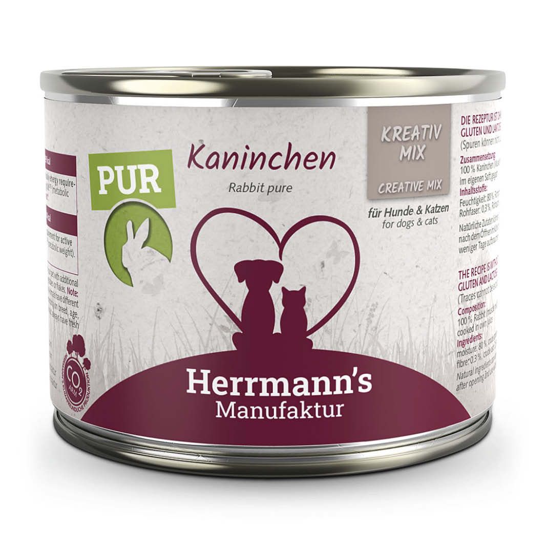 100 % Kaninchen (Muskelfleisch, Herz, Lunge, Knochen) ), im eigenen Saft gegart. Hinweis für Allergiker: Ohne Gluten, ohne Laktose und ohne Getreide.