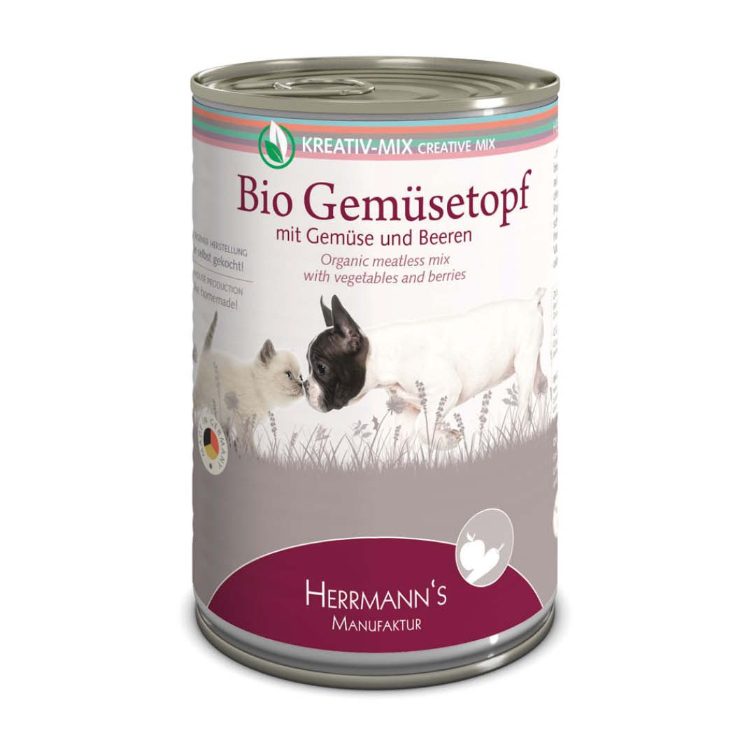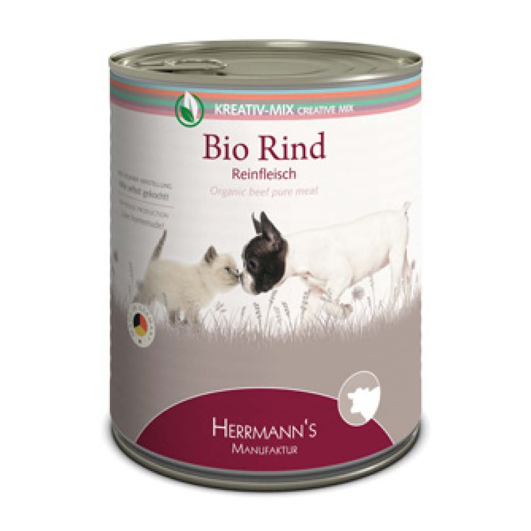 100 % Bio-Rind (65 % Muskelfleisch, 25 % Herz, 10 % Lunge), im eigenen Saft gegart