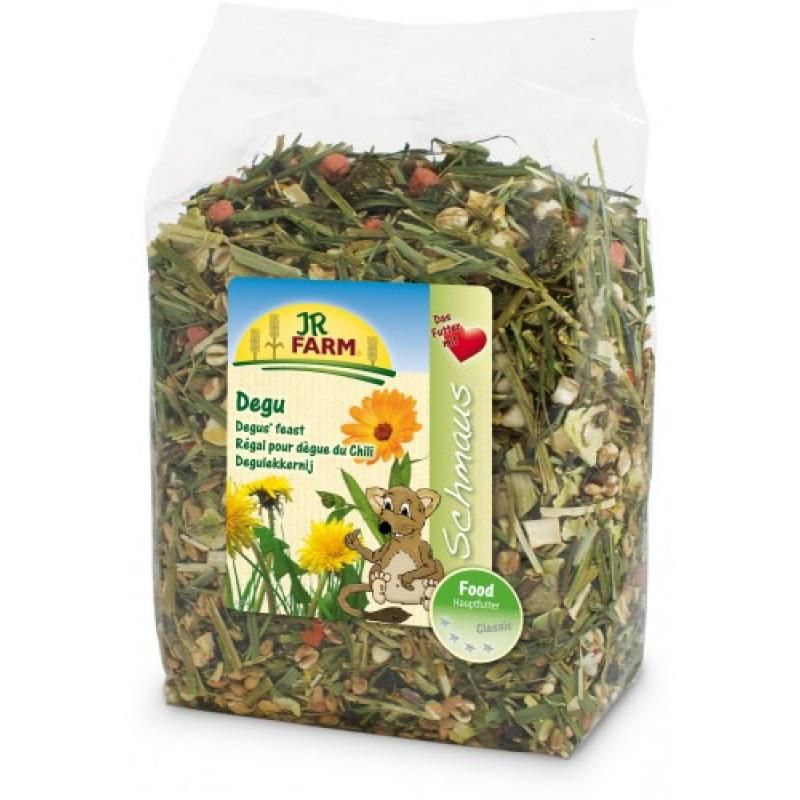Degu-Schmaus ist eine natürliche und artgerechte Alleinfuttermischung für alle Degus. Ein besonders hoher Rohfasergehalt und ein geringer Getreideanteil unterstützen die gesunde Verdauung und beugen Übergewicht vor. Natürlich ohne Früchte und zuckerreiche Zutaten um Diabetes vorzubeugen. Mit viel Gemüse, Vitaminen und Mineralstoffen für ein vitales Leben!