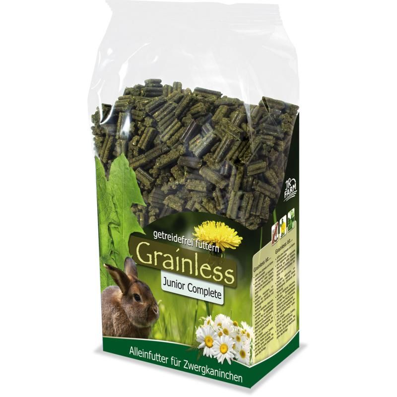 JR Grainless Complete Junior Zwergkaninchen Grainless Complete besteht zu 100% aus schonend gepressten Quad-Bits, die alle speziellen Grainless Komponenten in sich vereinen und durch ihre besondere Form den Zahnabrieb zusätzlich unterstützen. Durch eine optimale Mischung der Zutaten ist keine Selektion möglich. Grainless Junior unterstützt durch seine spezielle Form die Nahrungsaufnahme in den wichtigen ersten Lebensmonaten, und versorgt durch eine speziell für heranwachsende Tiere abgestimmtes Vitamin- und Mineralienverhältnis mit allen wichtigen Nährstoffen
