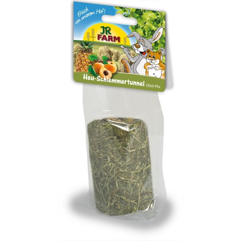 JR FARM Heu-Schlemmertunnel Obst-Mix Alle Kleintiere lieben es, an der fruchtigen Füllung zu Nagen, mit der aromatisch umhüllten Bergwiesenrolle zu spielen und sich darin zu verstecken. Natur Pur aus 100% Naturmaterial, komplett zum Benagen, mit natürlichem Bindemittel