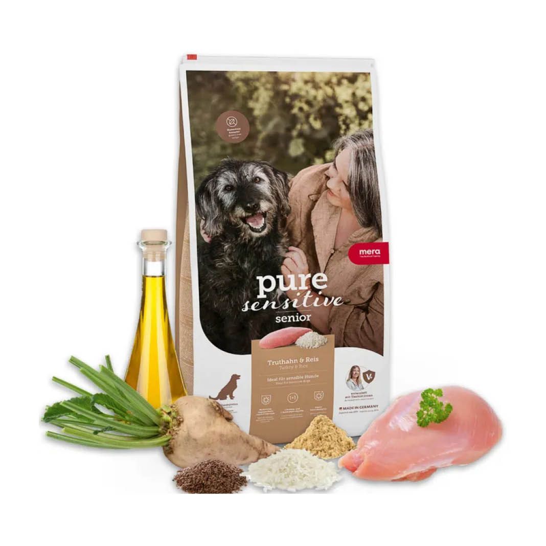 Das Trockenfutter pure sensitive Senior Truthahn & Reis ist besonders für sensible ältere Hunde geeignet und ersetzt den Artikel "pure Senior Truthahn&Reis". Mit bekömmlichen Truthahn als einzige tierische Proteinquelle und leicht verdaulichem Reis verzichtet die Rezeptur auf glutenhaltige Zutaten. Die hoch verdauliche Rezeptur ist nach dem Limited Ingredient Diet (L.I.D.) Prinzip konzipiert und in seiner Zusammensetzung auf die wesentlichen Zutaten für sensible Hunde konzentriert. Das Risiko von Nahrungsunverträglichkeiten und Allergien kann so minimiert werden.