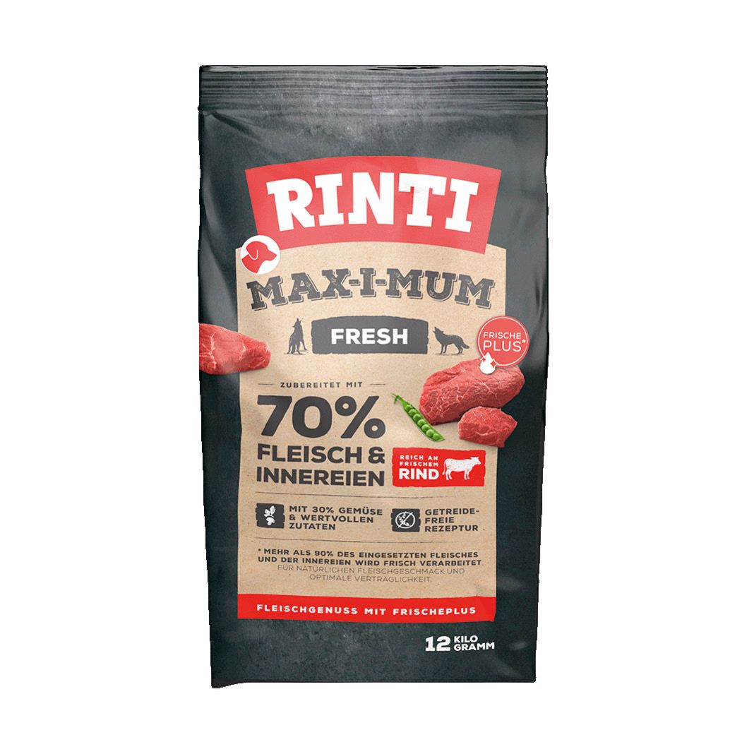 Trockenfutter wird häufig mit Getreide hergestellt. Der Hund ist von Natur aus ein Fleischfresser. Deshalb verwendet Rinti Max-i-Mum hohe Frischfleischgehalte, die in einem aufwendigen Produktionsprozess verarbeitet werden.