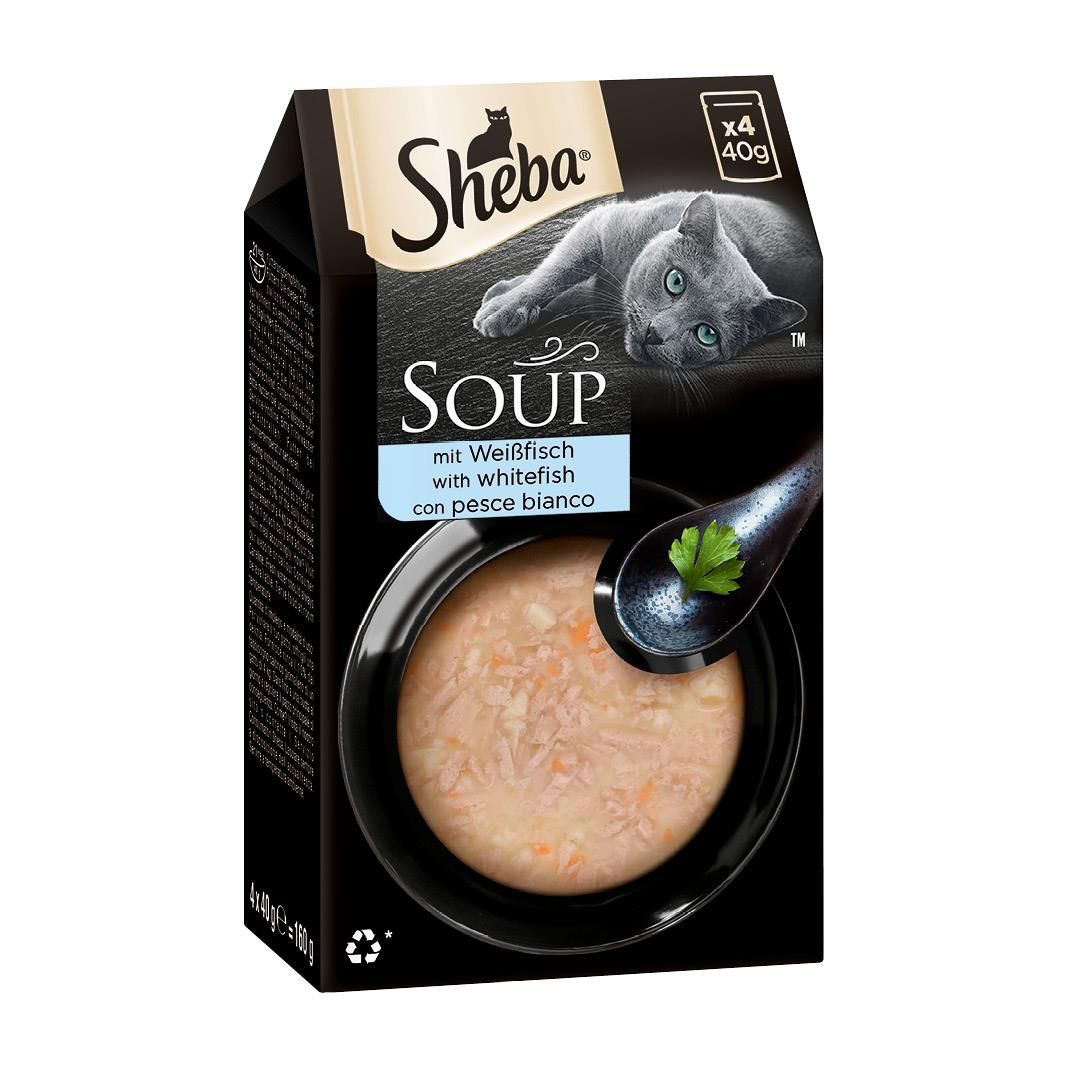 SHEBA® ist zur Freude aller Katzen seit über 30 Jahren Experte für Nassfutterrezepturen. Kulinarische Hochgenüsse für jeden Tag in einer Reihe von Geschmacksrichtungen und Texturen, die Ihre Katze kennt und liebt, hergestellt aus natürlichen und hochwertigen Zutaten: Die vielfältige Auswahl an hochwertigem Katzenfutter befriedigt selbst anspruchsvolle Katzen in ihrem Wunsch, täglich eine ganz besondere Mahlzeit zu genießen. Eine köstliche Suppe aus feinsten Stückchen mit Fisch oder Fleisch in einer klaren Brühe. Eine unwiderstehliche Rezeptur, die das Verlangen Ihrer Katze nach einem neuen Geschmackserlebnis weckt.