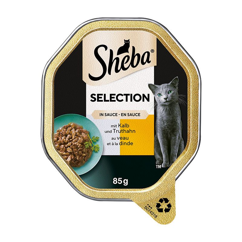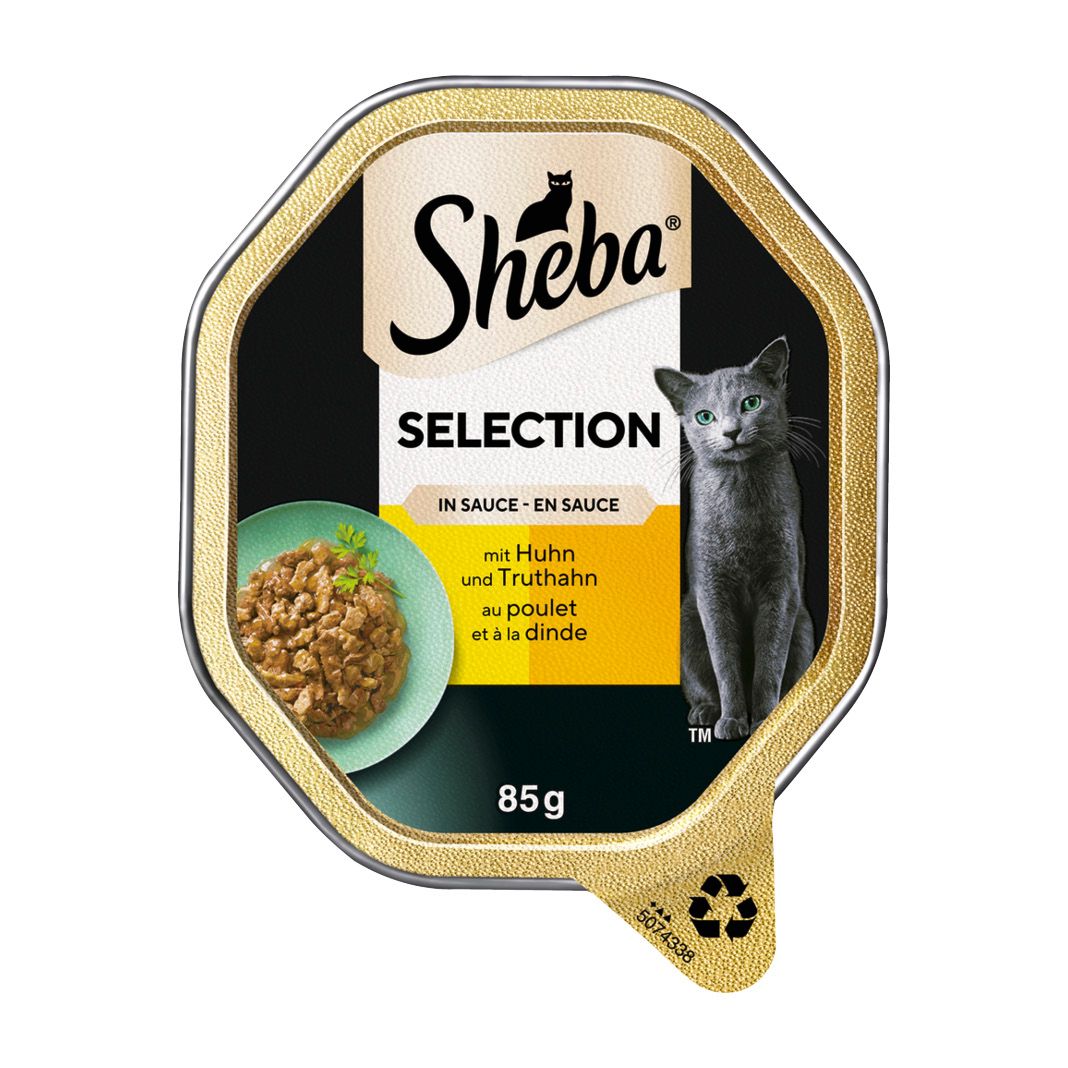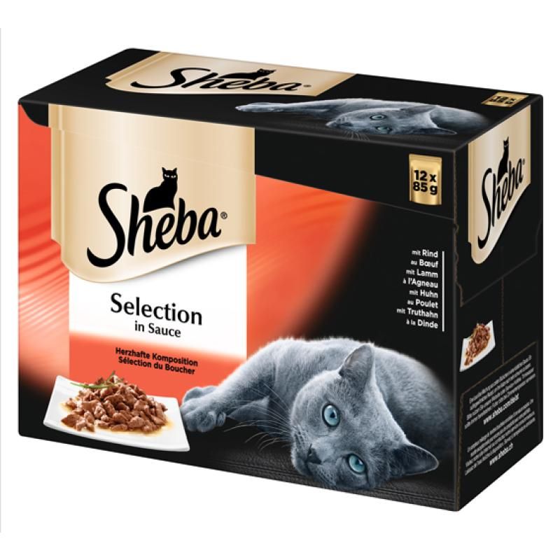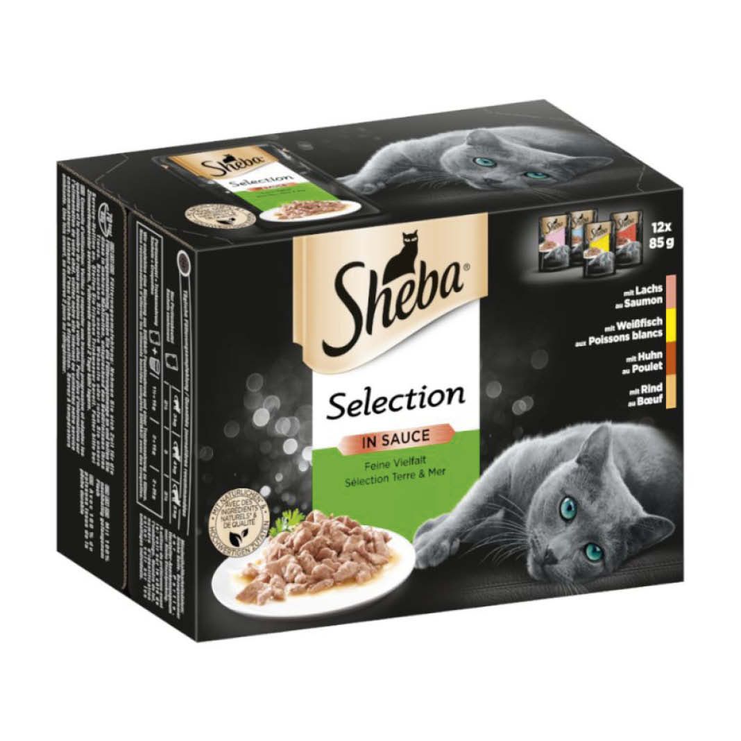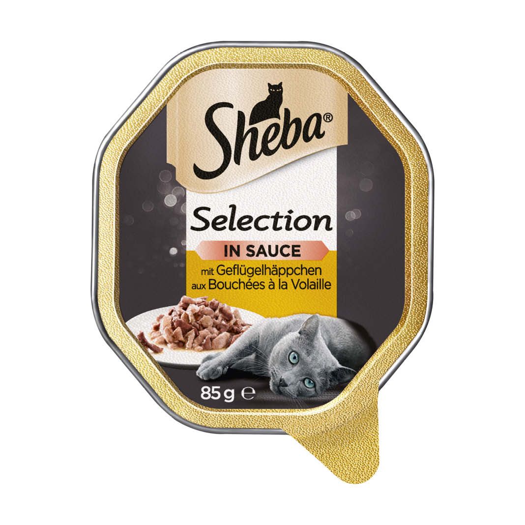 Sheba® Selection in Sauce bietet eine Auswahl köstlicher Mahlzeiten mit zarten Fleischstückchen in köstlicher Sauce, um Ihren Feinschmecker immer wieder zu verwöhnen.