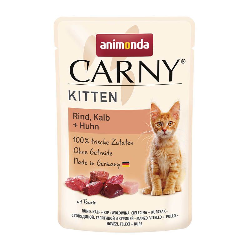 Carny® Kitten – aus frischen fleischlichen Rohstoffen – steht für ausgewogene, leckere, gesunde Ernährung auf höchstem Niveau für wachsende Katzen im ersten Lebensjahr. Katzenkinder entwickeln sehr früh ihre ersten geschmacklichen Vorlieben. Carny Kitten mit den leckeren, kätzchengerechten, kleinen fleischigen Stückchen ist speziell abgestimmt auf die Nährstoffansprüche wachsender Katzen.