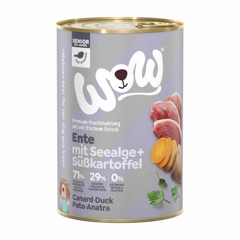 Dose Senior 400/800g: 5kg: 200-400g, 10kg: 400-600g, 20kg: 600-950g, 30kg: 950-1400g, 40+kg: 1400+g.